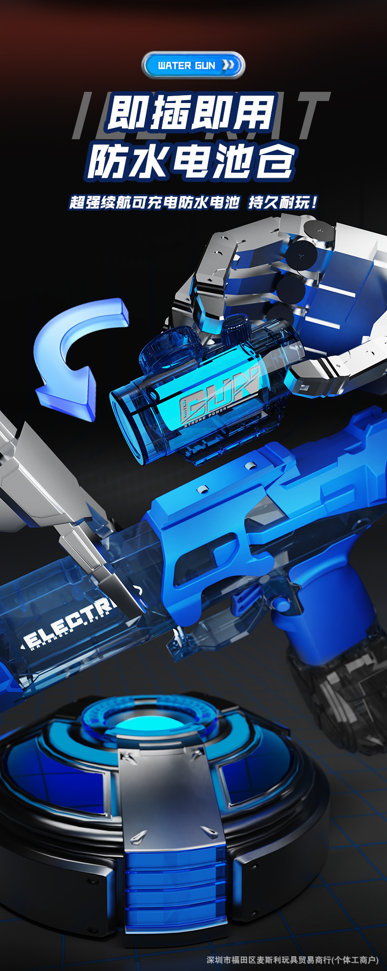 • 파이어 아이스 마우스 전기 물총 [테크놀러지 블루] 리튬 배터리 3개