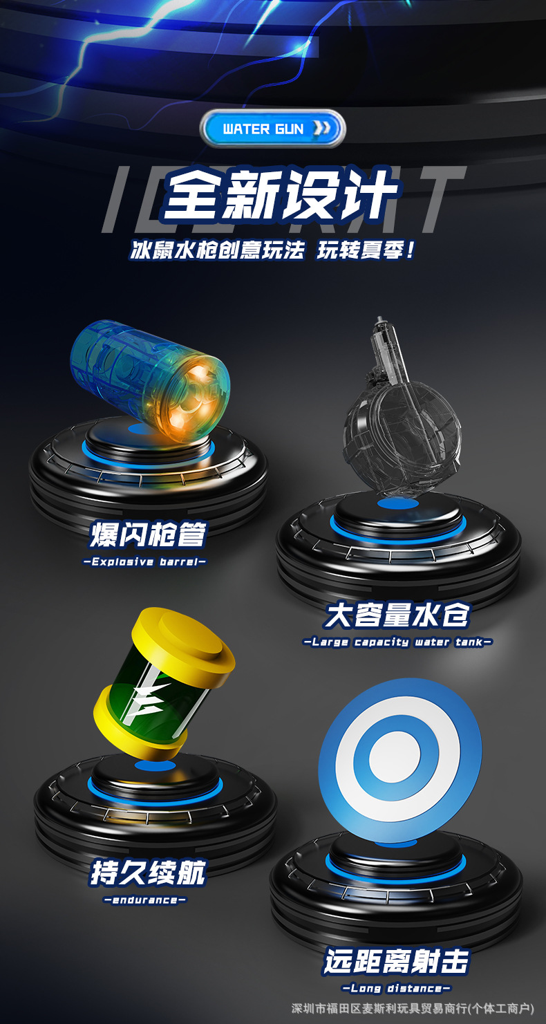 • 파이어 아이스 마우스 전동 물총 [미스테리어스 블랙] 리튬 배터리 3개