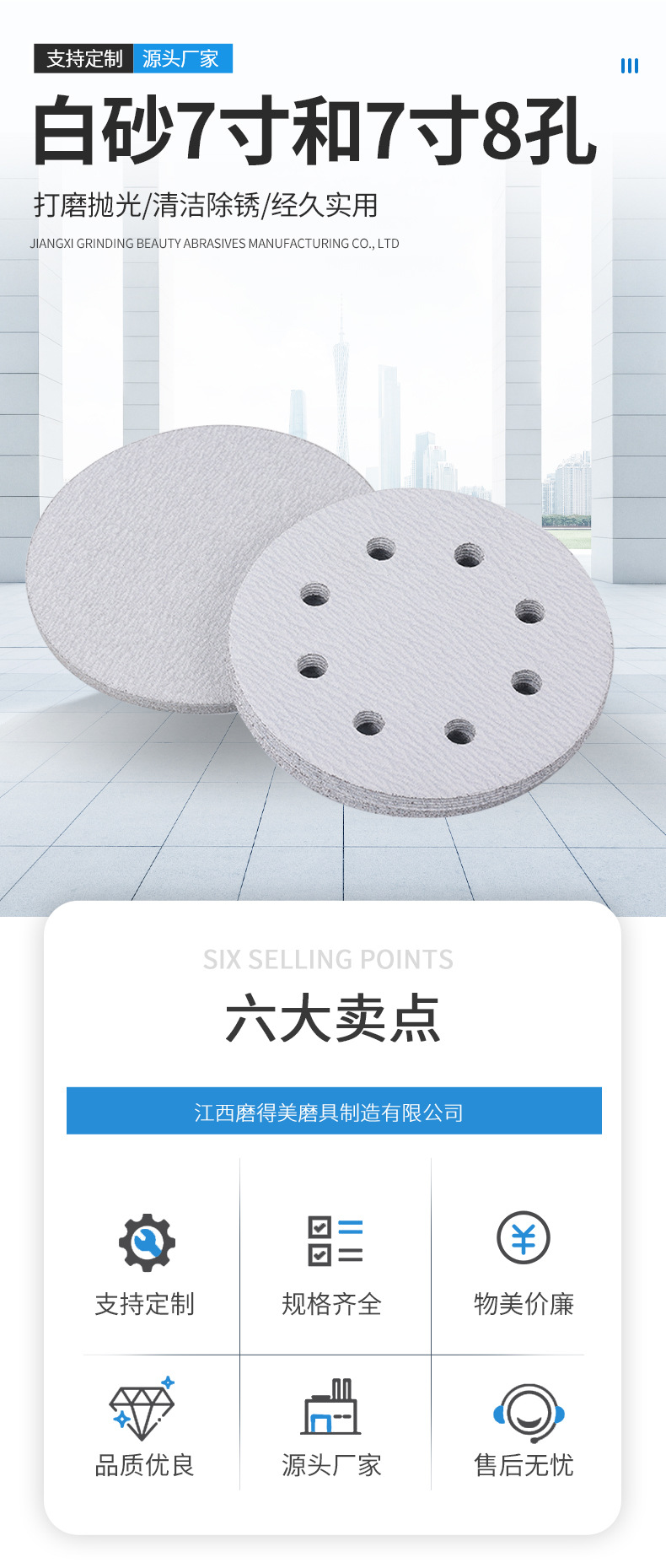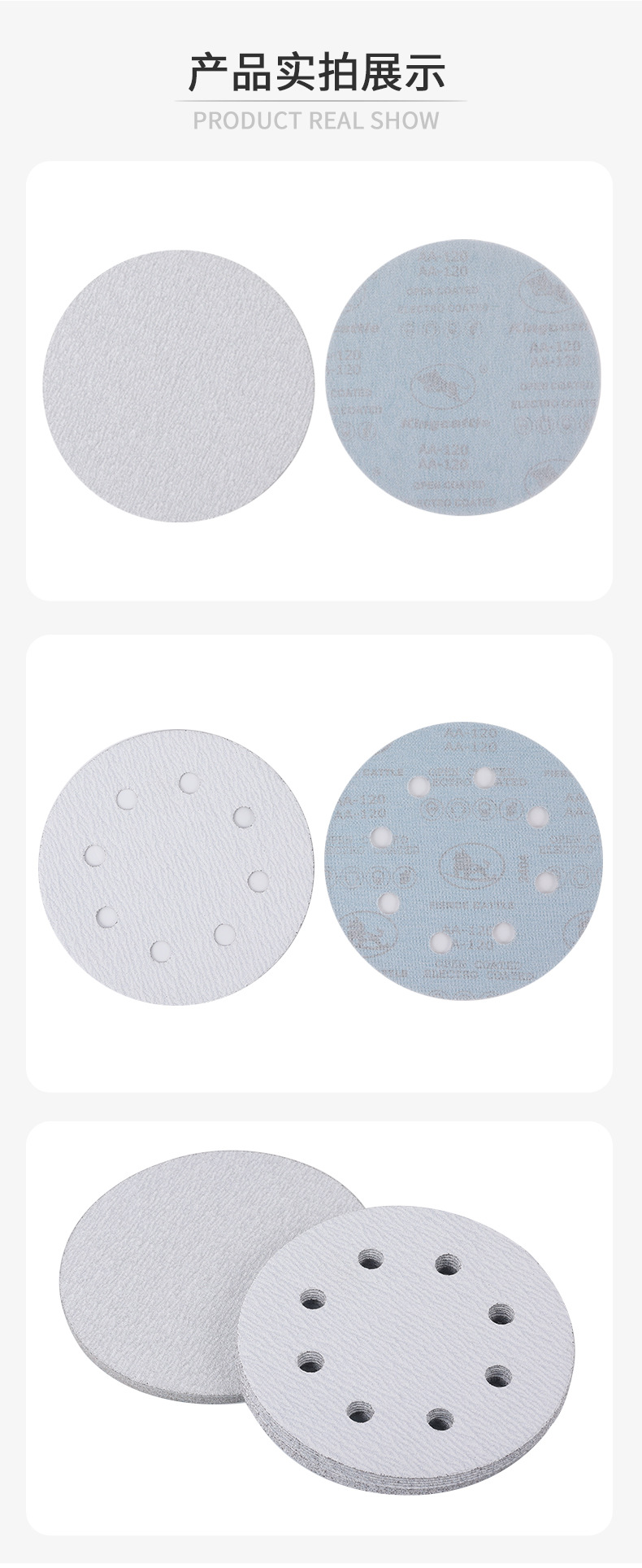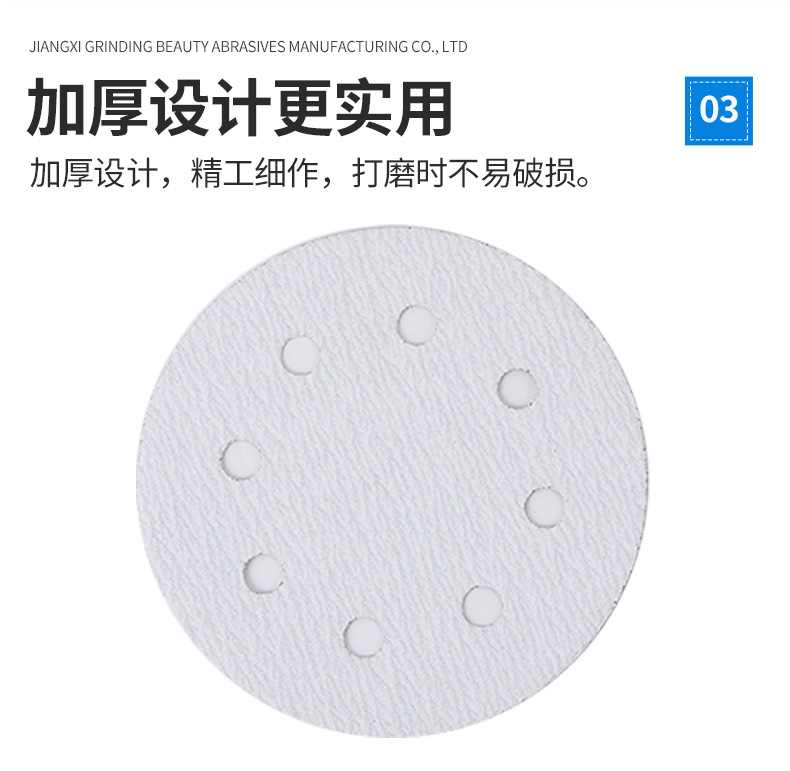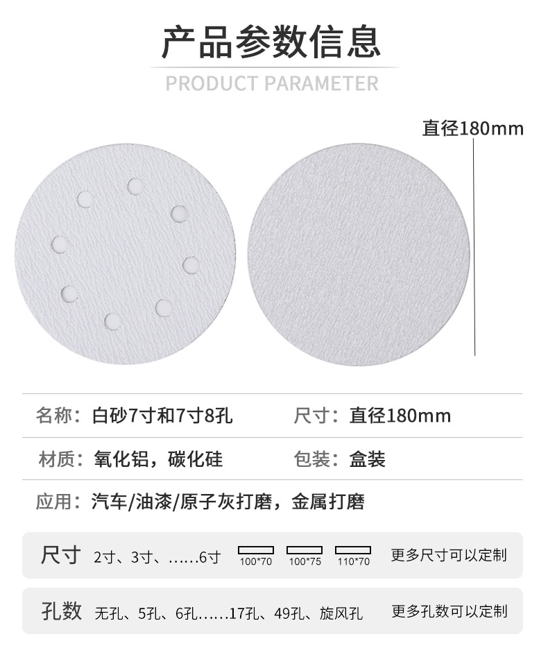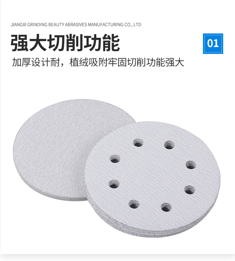 플록 사포 시트 건식 연삭 흰색 사포 7 인치 8 홀 디스크 흰색 사포 가구 벽 금속 연마 사포 도매