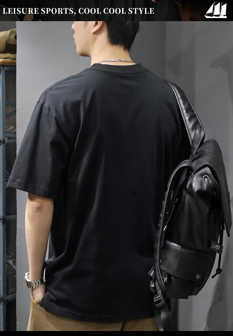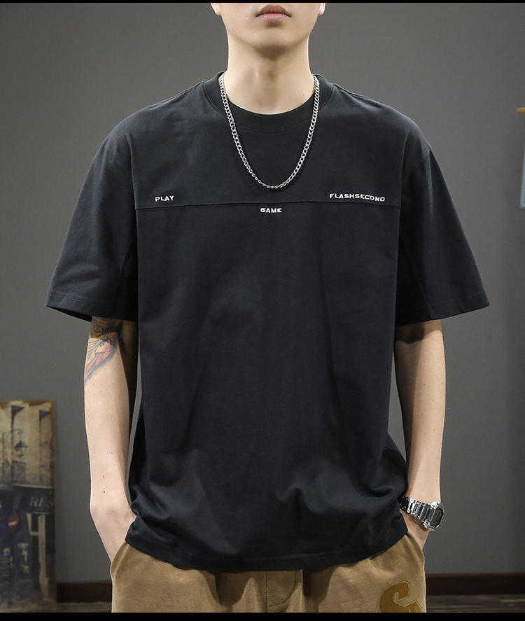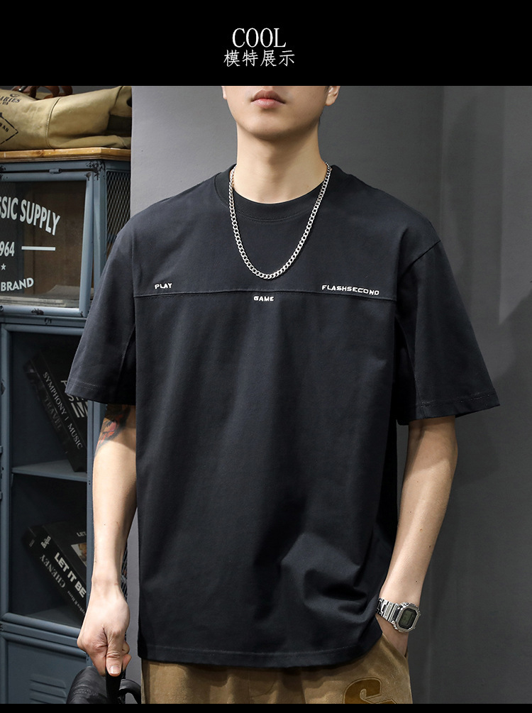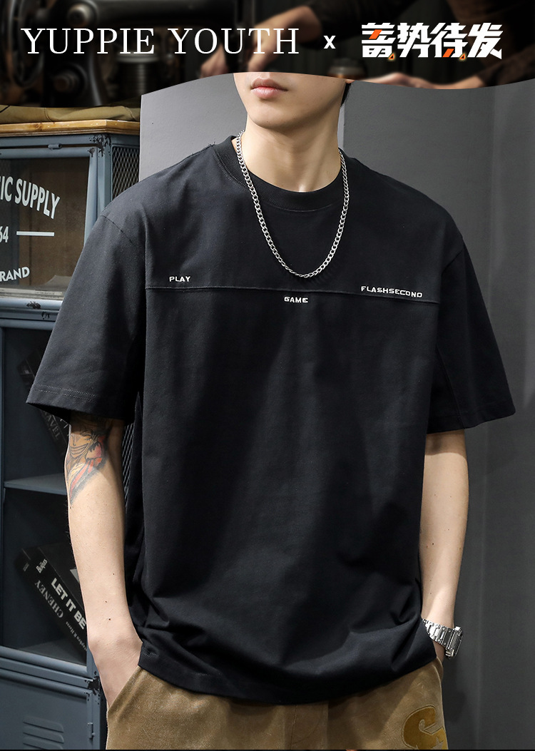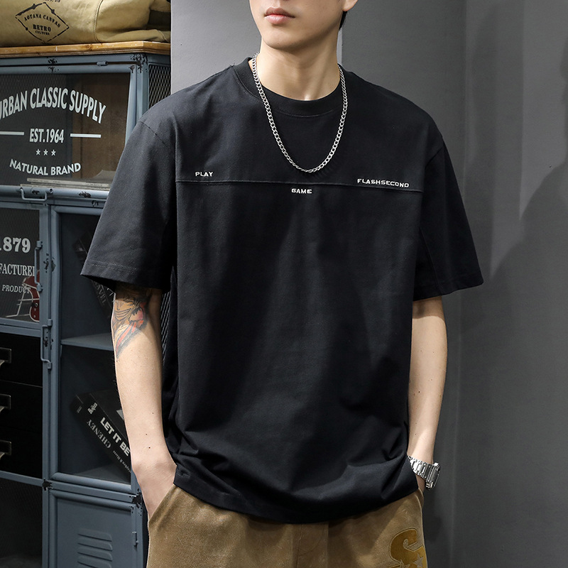230g 무거운 바느질 짧은 소매 티셔츠 남자의 여름 조수 브랜드 수 놓은 티셔츠 미국 캐주얼 크루 넥 하프 슬리브 타이드 탑 T