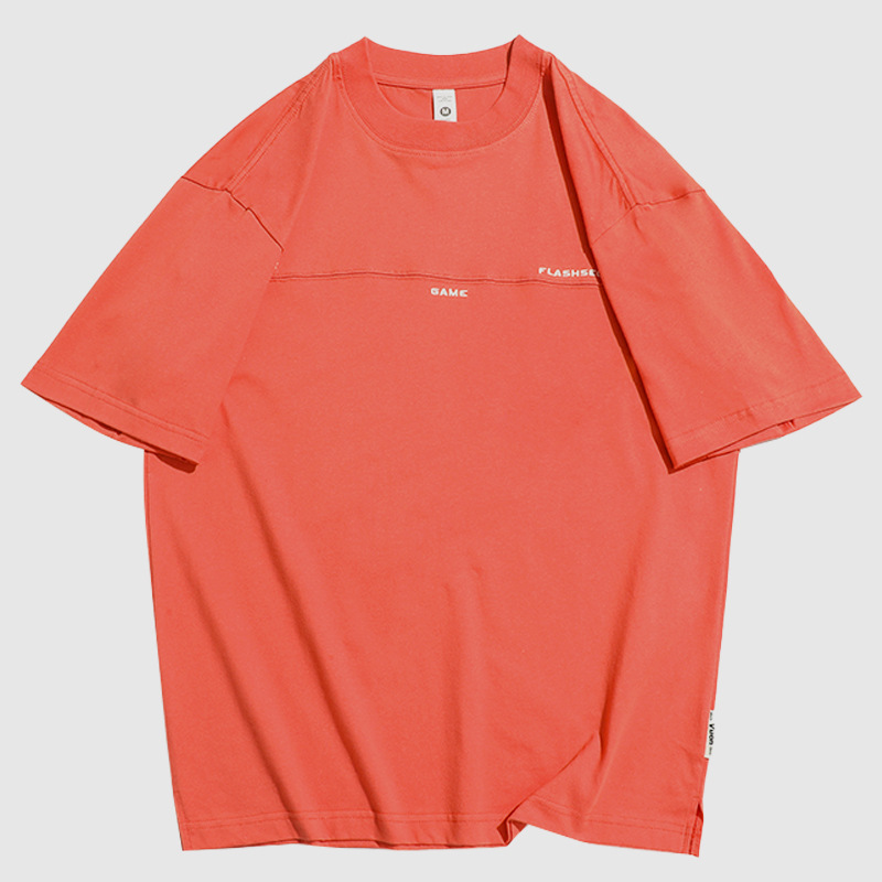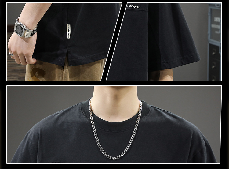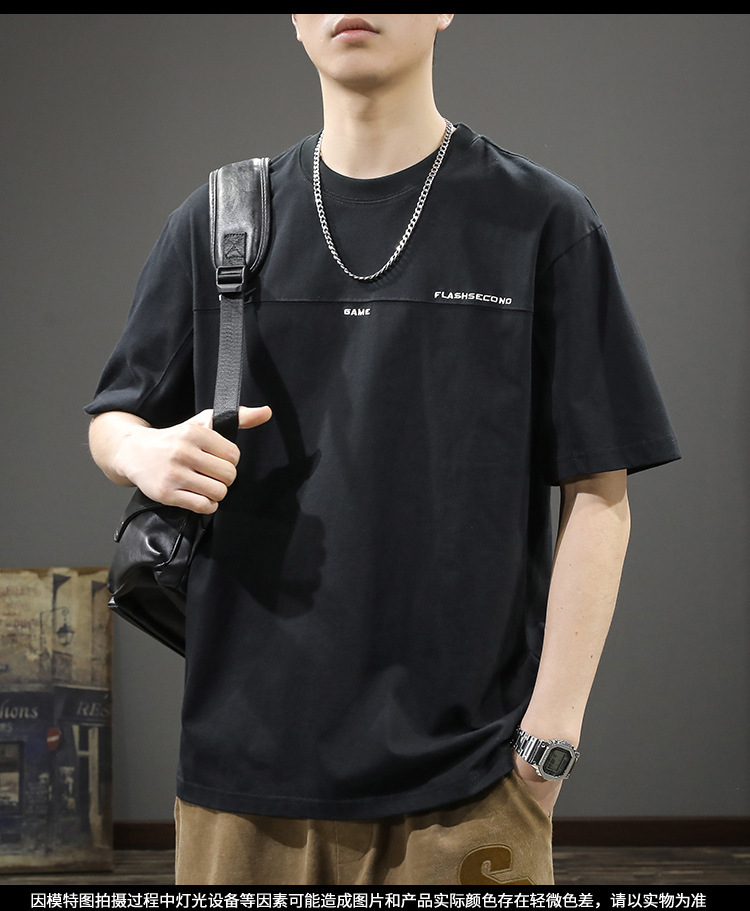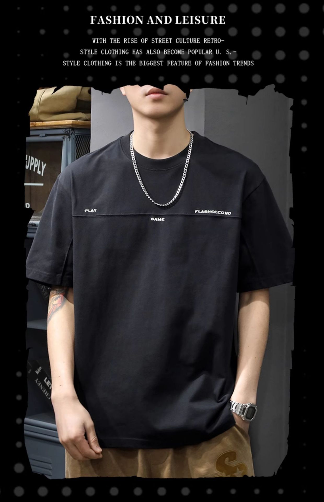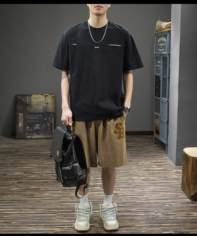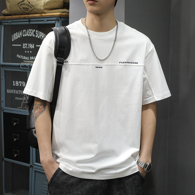 230g 무거운 바느질 짧은 소매 티셔츠 남자의 여름 조수 브랜드 수 놓은 티셔츠 미국 캐주얼 크루 넥 하프 슬리브 타이드 탑 T