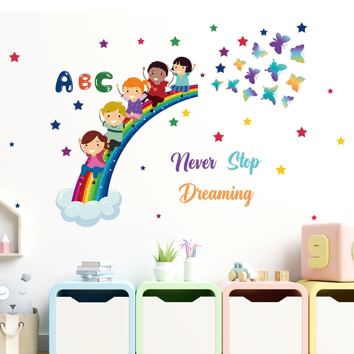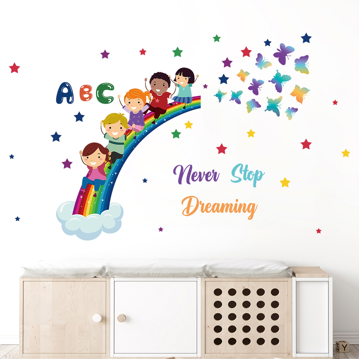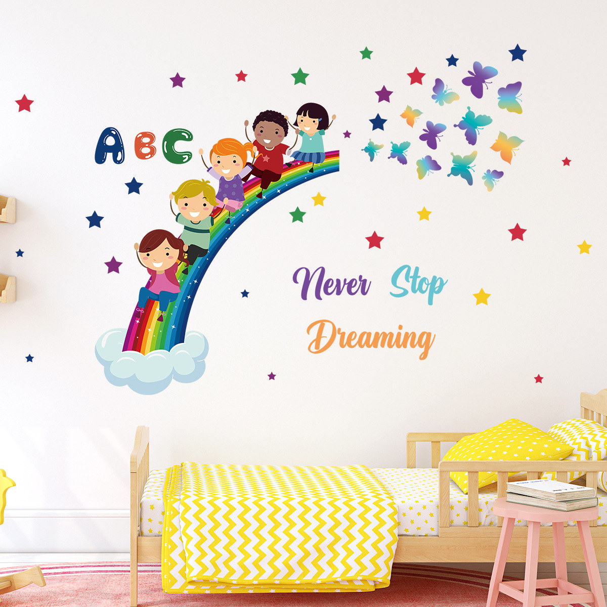 귀여운 어린이 방 배경 벽 장식 스티커 BR0797F 만화 아이 같은 무지개 슬라이드 자체 접착 벽 스티커