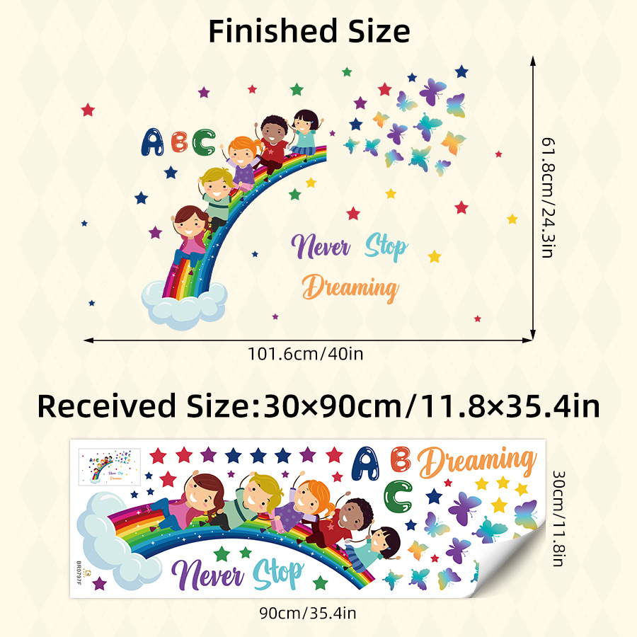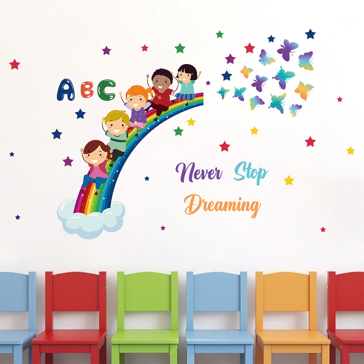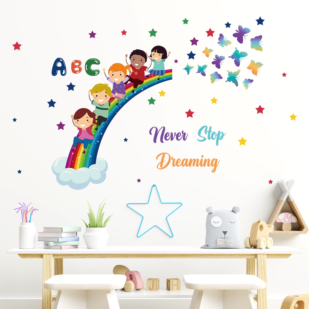 귀여운 어린이 방 배경 벽 장식 스티커 BR0797F 만화 아이 같은 무지개 슬라이드 자체 접착 벽 스티커