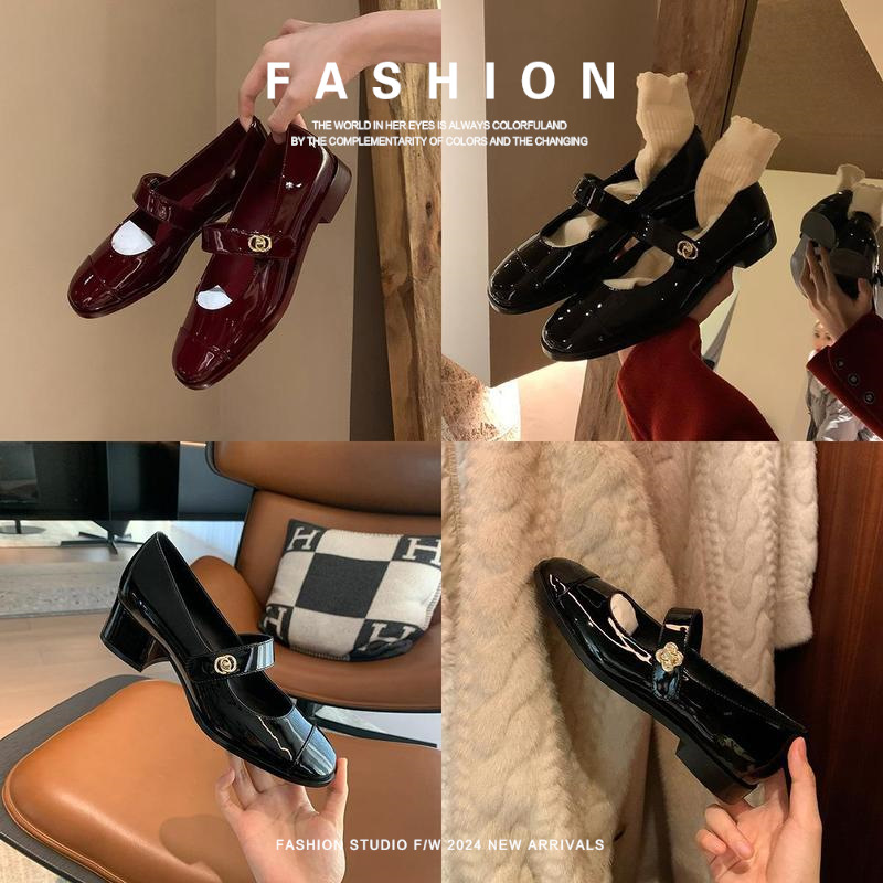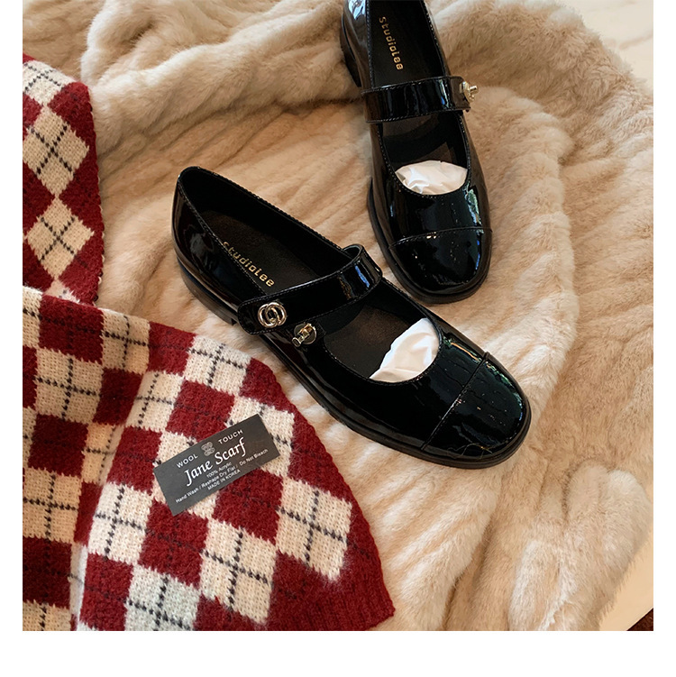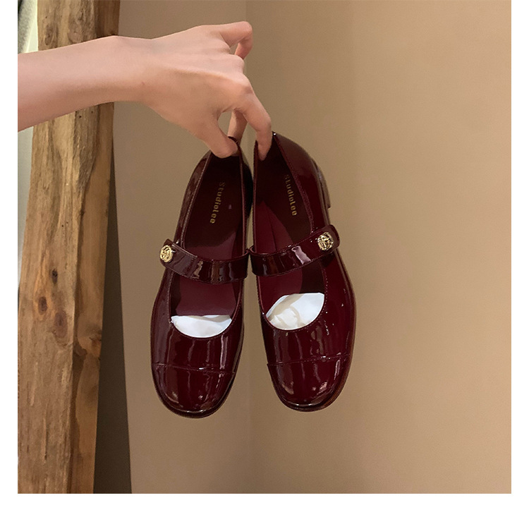 가죽 원피스 신상 메탈 버클 라운드 토 소프트 스트랩 메리제인 슈즈 두꺼운 굽 레드 여성 가을 신발스토어 가기