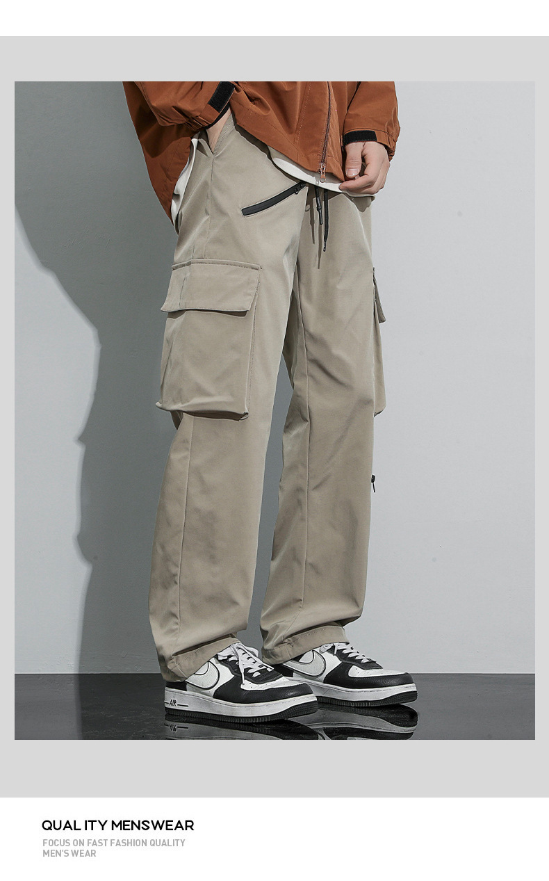 NASA 아메리칸 스타일, 남성용 얇은 느슨한 캐주얼 스트레이트 기능성 대형 포켓 트렌디 브랜드 바지스토어 가기