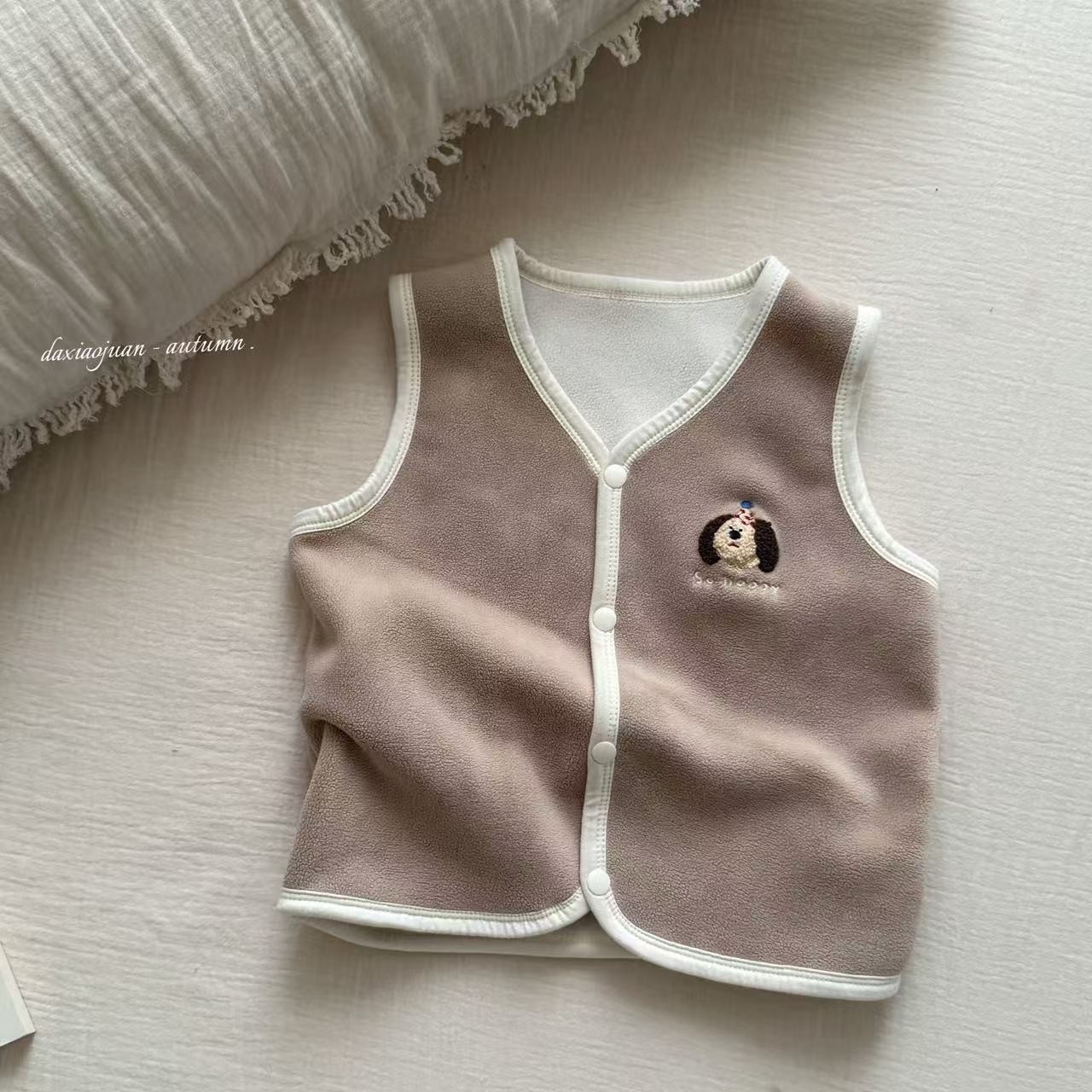 대형 및 소형 롤 25 새로운 어린이 조끼 봄과 가을 스타일 올리 벨벳 조끼 소년과 소녀를위한 따뜻한 베이비 탑스토어 가기