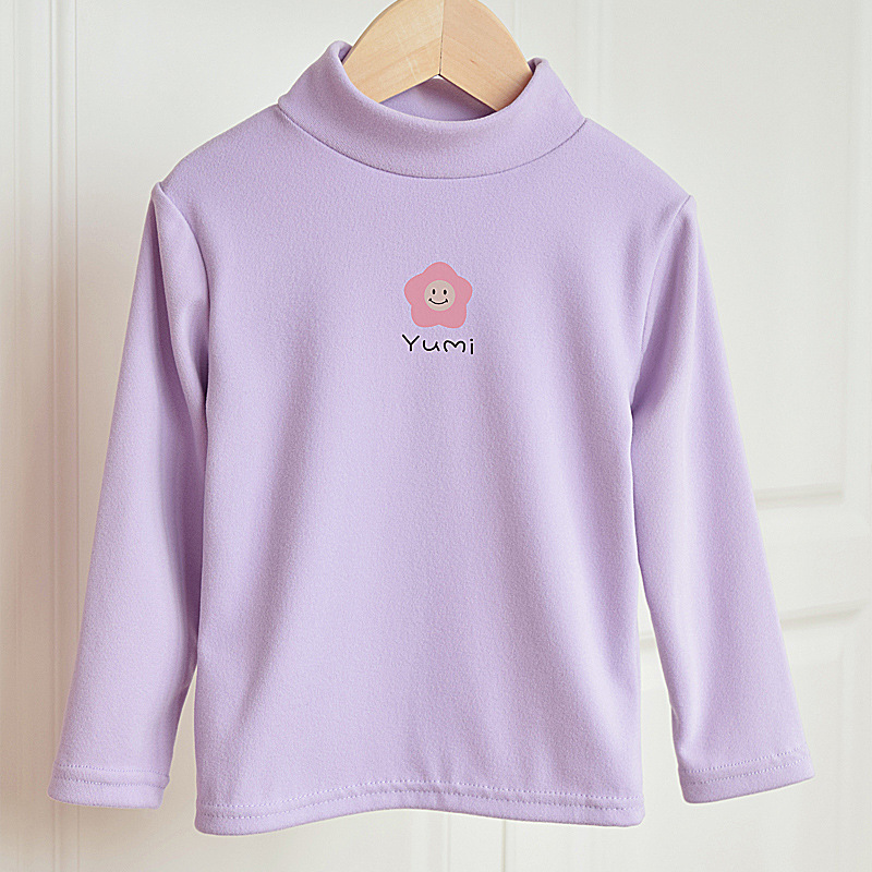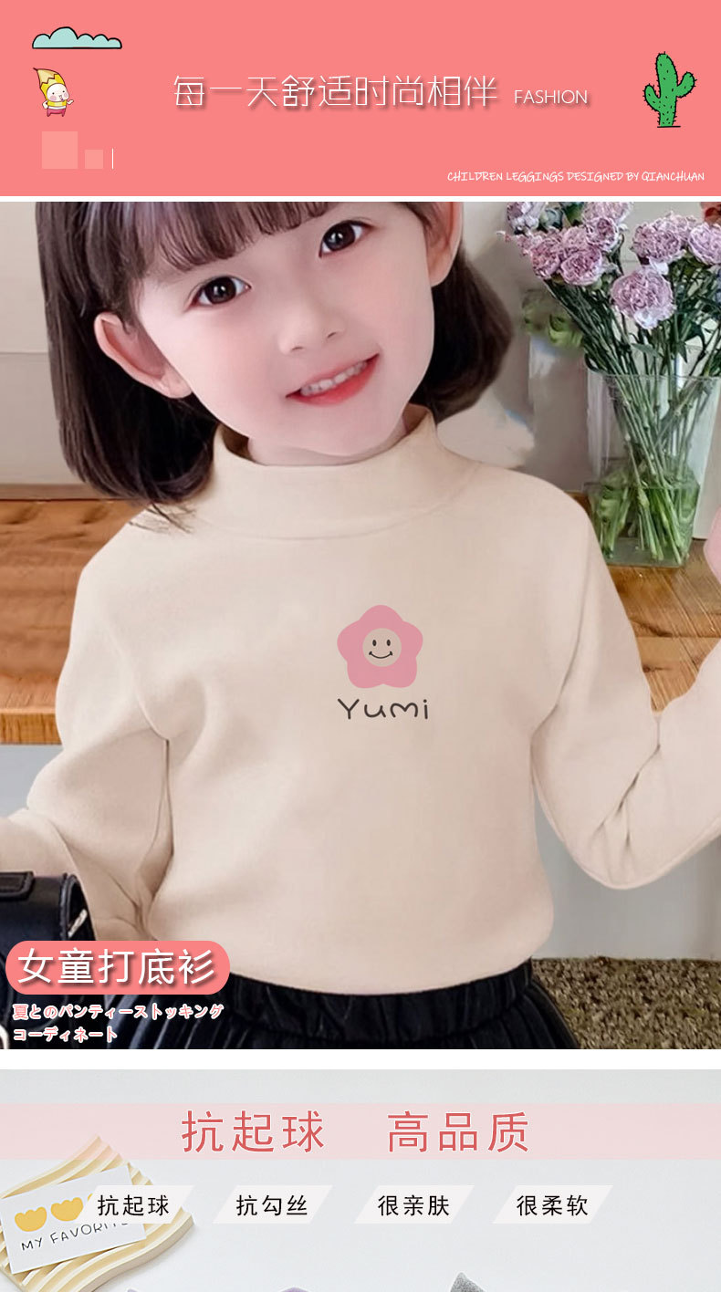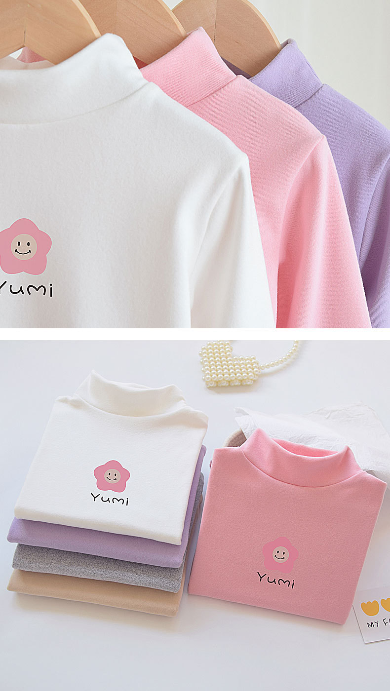 여아 티셔츠 베이스 레이어 2024 가을 신상 가을 겨울 독일산 벨벳 하프 터틀넥 스타일리쉬한 여아 긴팔 베이스 레이어 탑