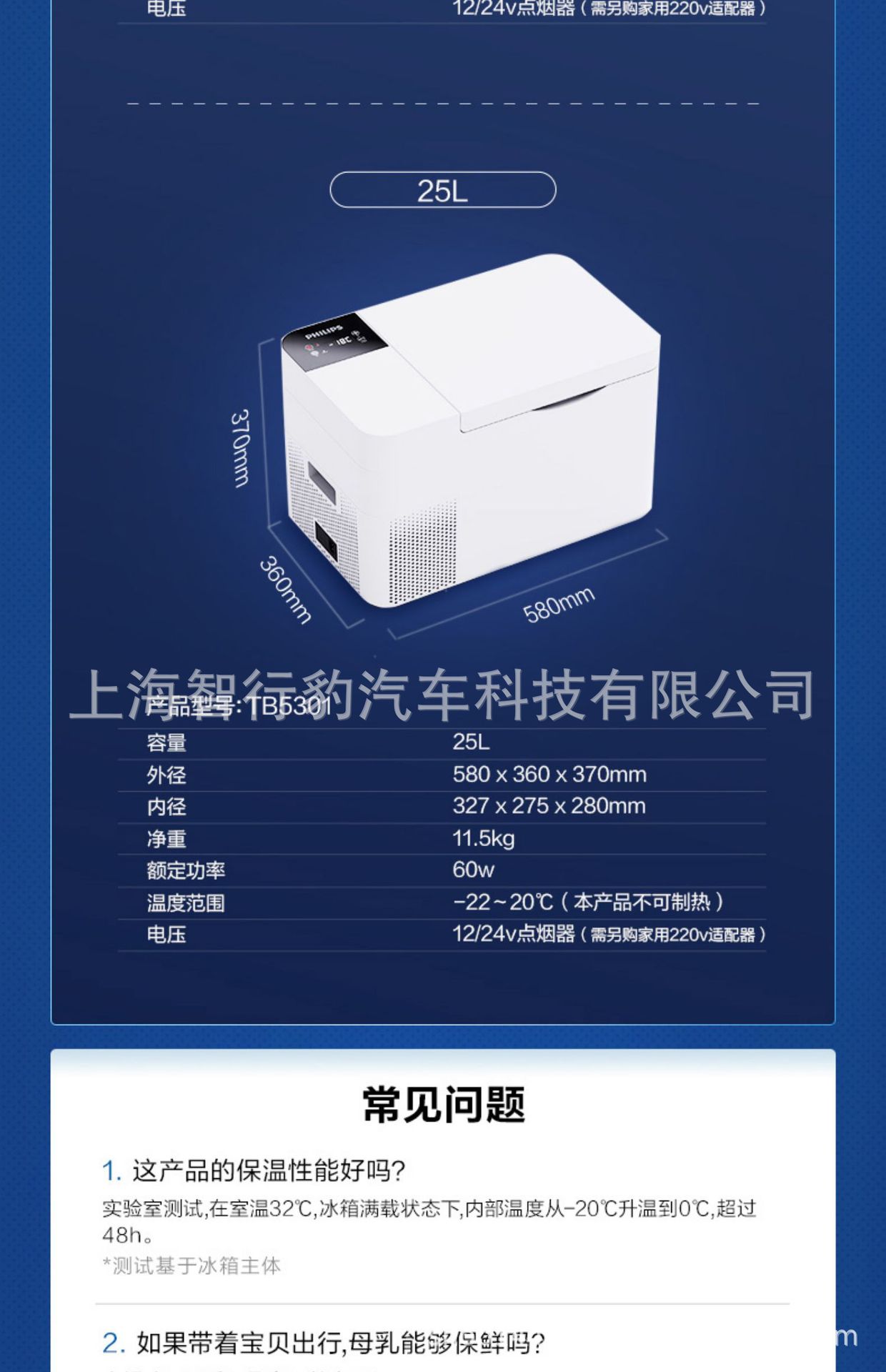 필립스 컴프레서 자동차 냉장고 자동차 홈 듀얼 사용 미니 유방 우유 냉동 자동차 냉장고 소형스토어 가기