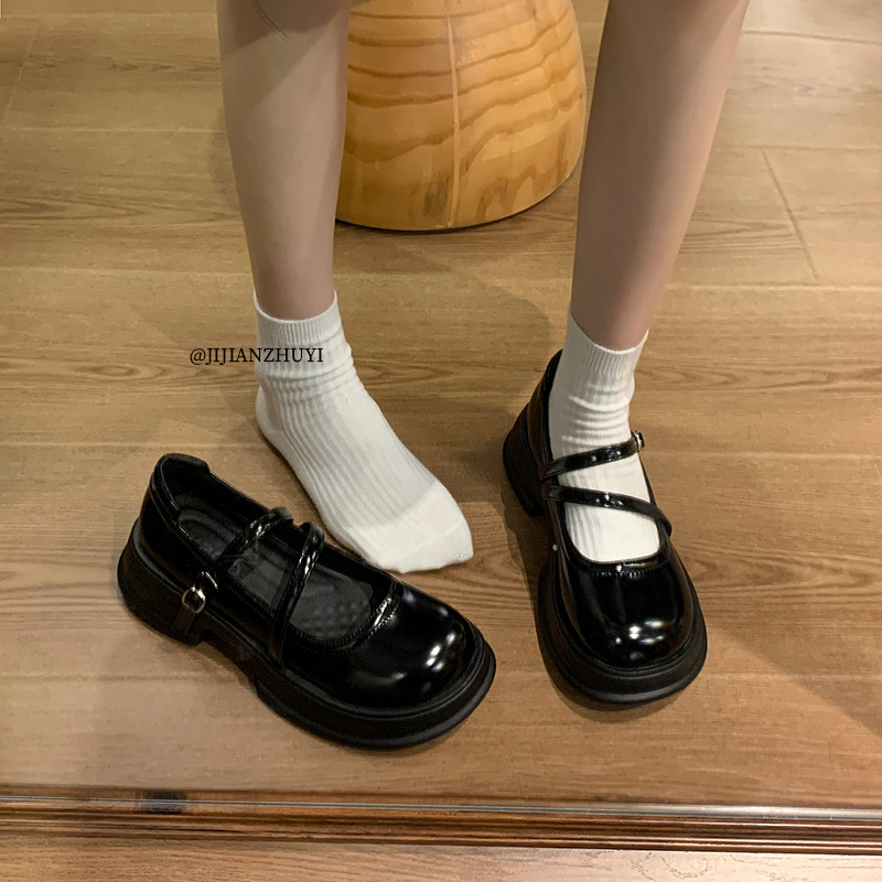Jk 다크 브라운 라운드 발가락 플랫폼 작은 가죽 신발 여성의 2024 새로운 봄 복고풍 영국 스타일 일본 메리 제인 싱글 레이어 신발스토어 가기