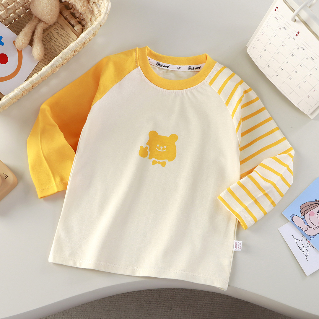2025 새로운 어린이 티셔츠 순수 코튼 소년 탑 긴팔 싱글 피스 소녀 클래스 순수 코튼 의류 만화 유행 어린이