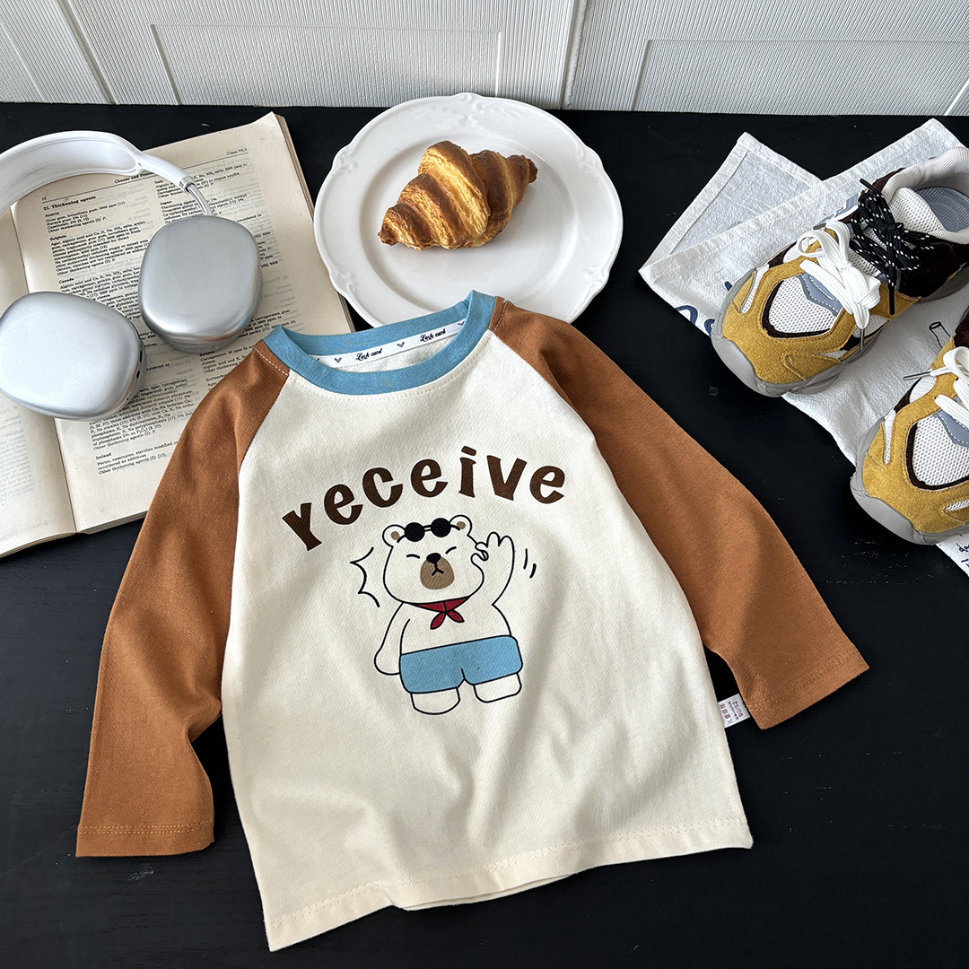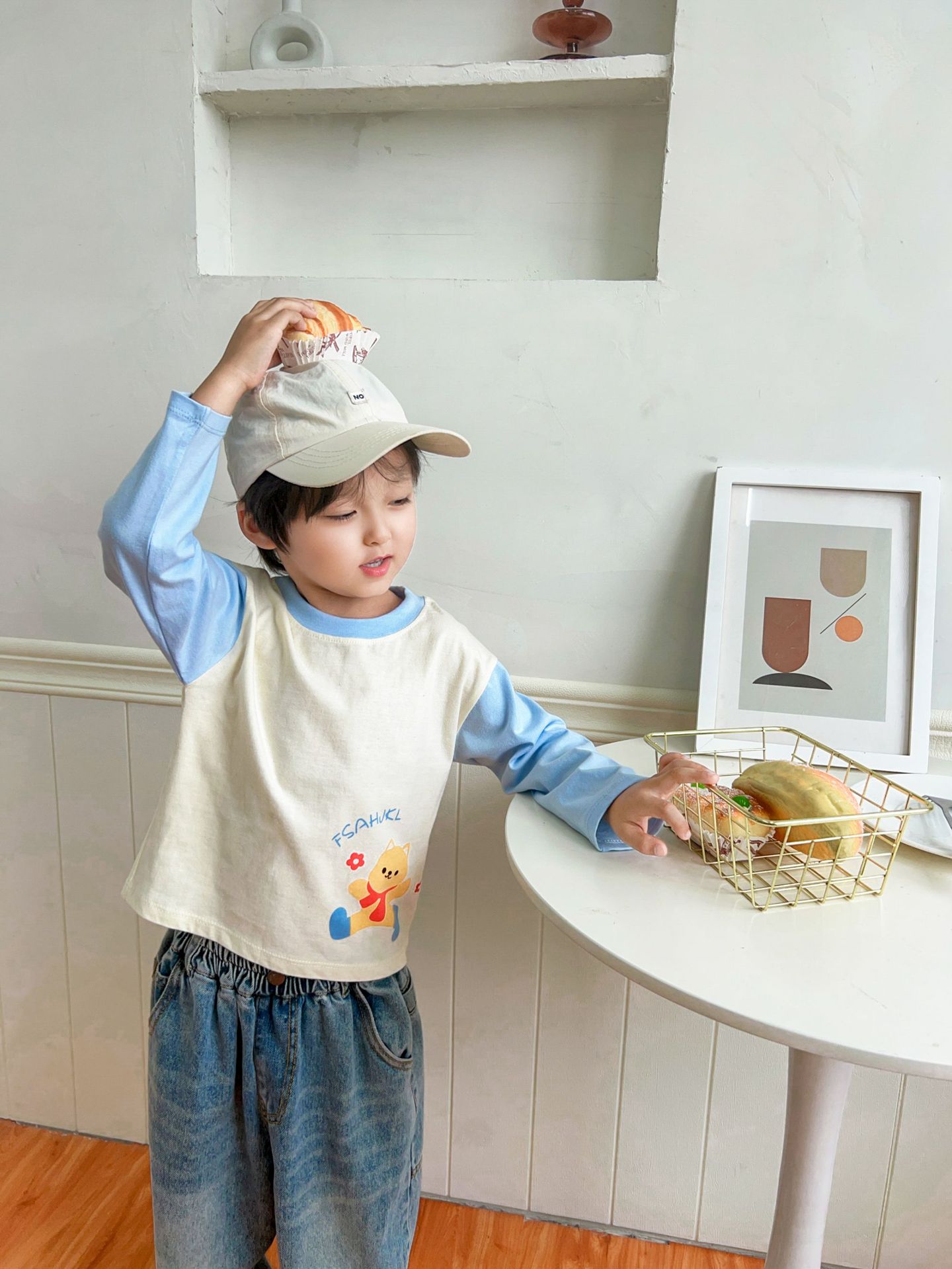 2025 새로운 어린이 티셔츠 순수 코튼 소년 탑 긴팔 싱글 피스 소녀 클래스 순수 코튼 의류 만화 유행 어린이스토어 가기