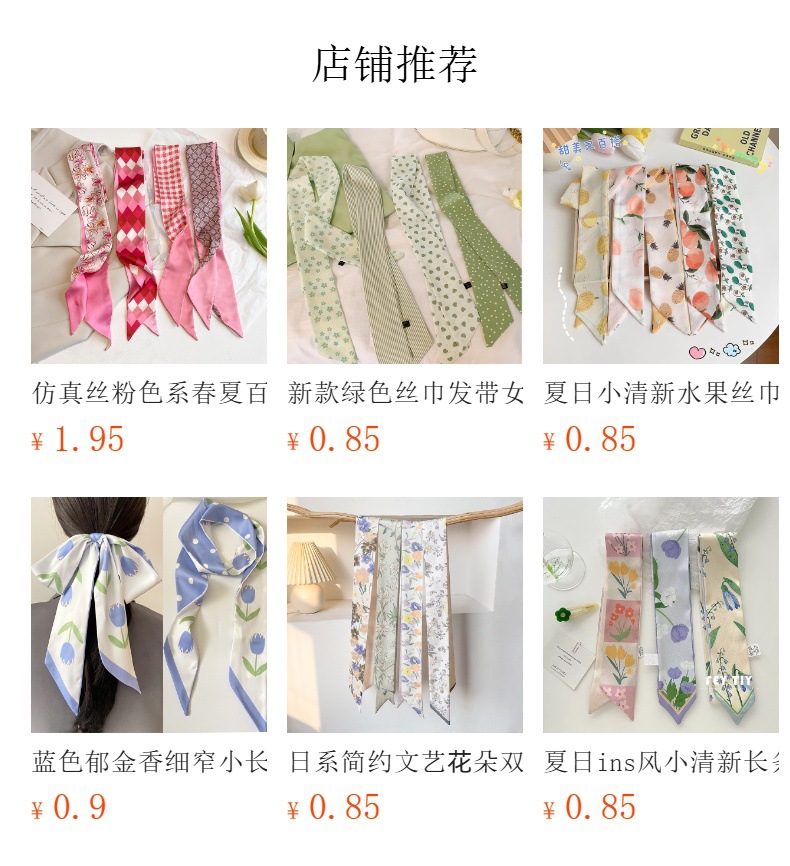 여름 새로운 스타일 인쇄 된 신선한 실크 스카프 꽃 헤어 밴드 넥타이 및 붕대 헤어 리본 한국 모든 매치 스카프 액세서리스토어 가기