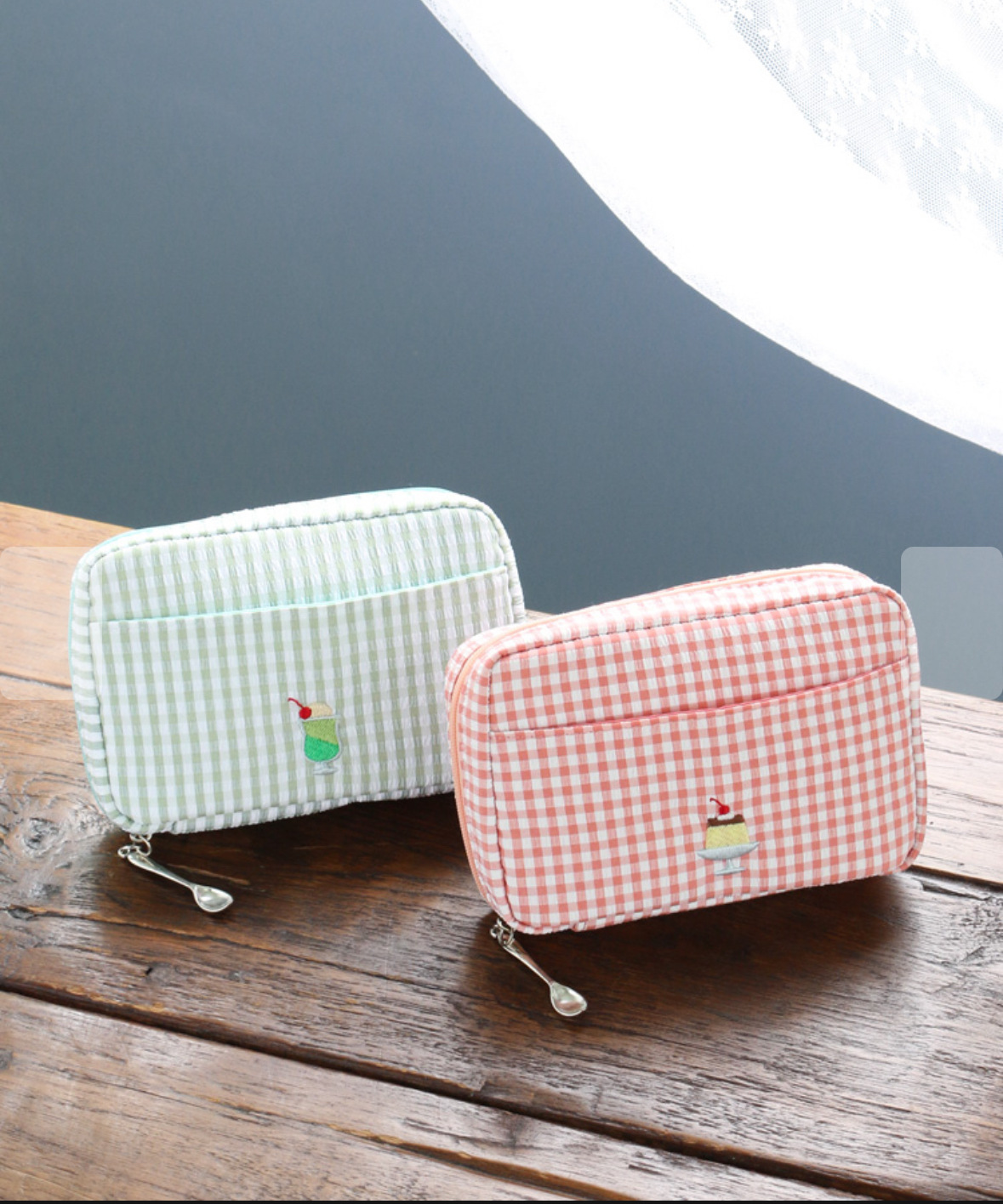 • 녹색 체크무늬 화장품 가방(재고 있음)