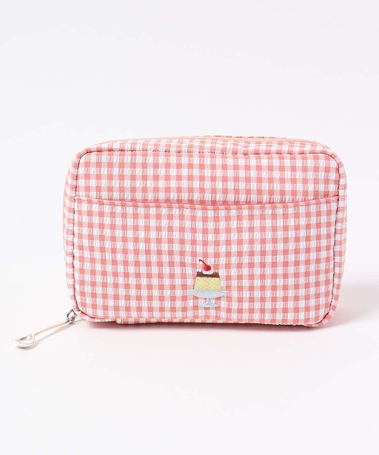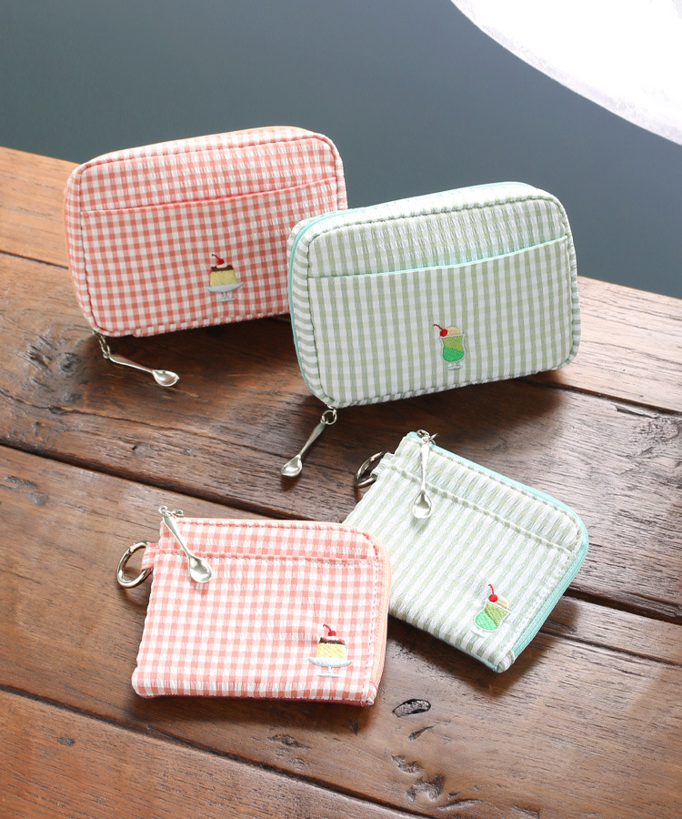 일본 차 자수 디저트 푸딩 L 가방 쉘 가방 격자 무늬 화장품 가방 소녀 휴대용 보관 가방 세탁 가방