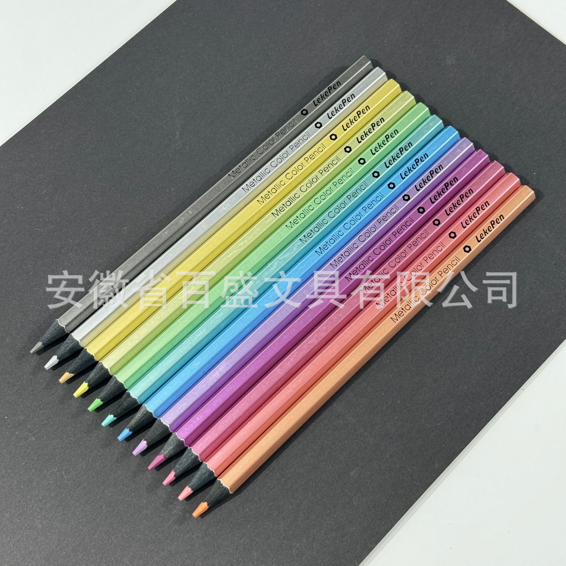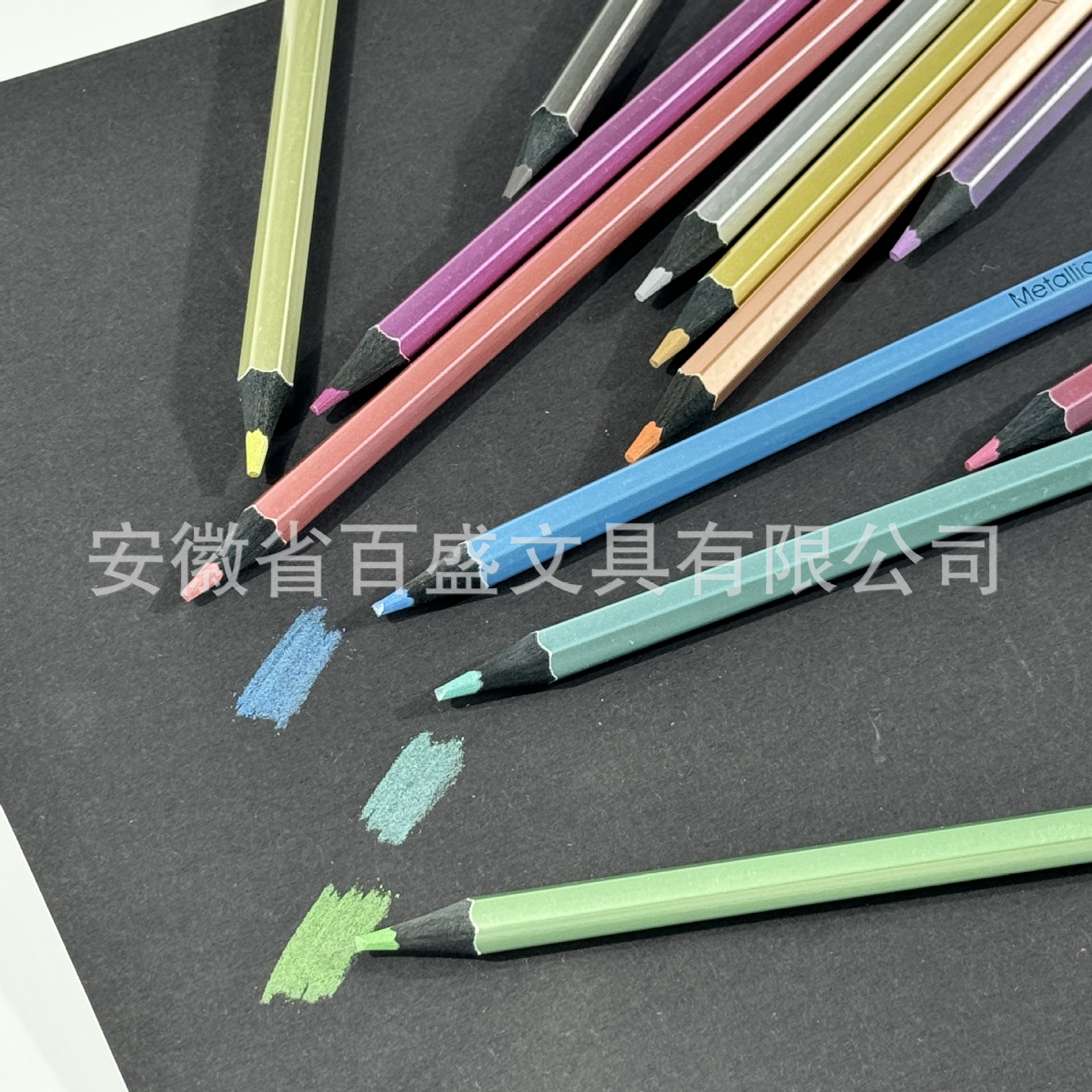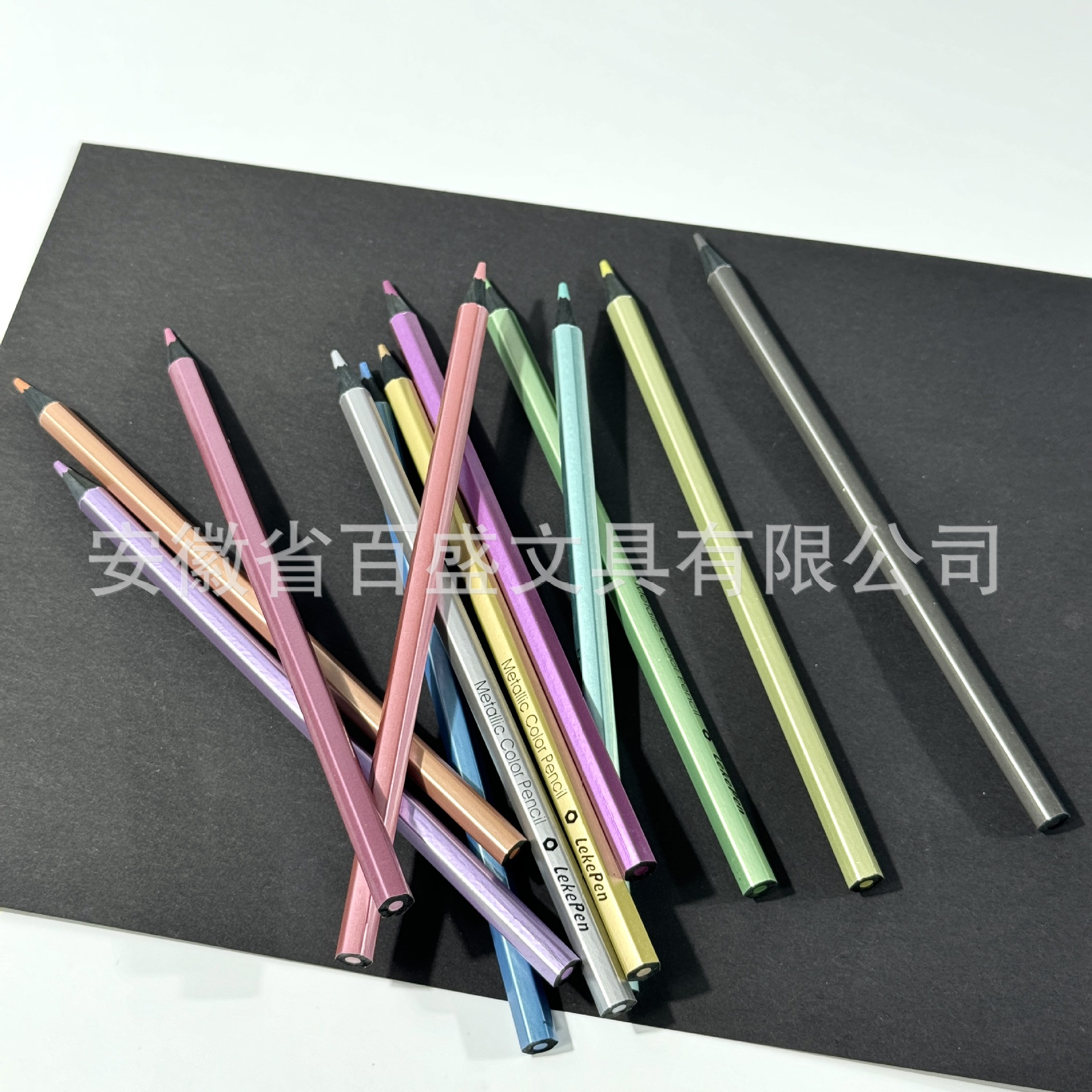 국경 검은 나무 금속 색상 12 색 연필 어린이 창조적 인 낙서 그림 컬러 펜 세트 공장 직접 판매
