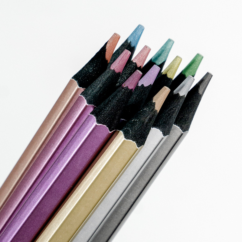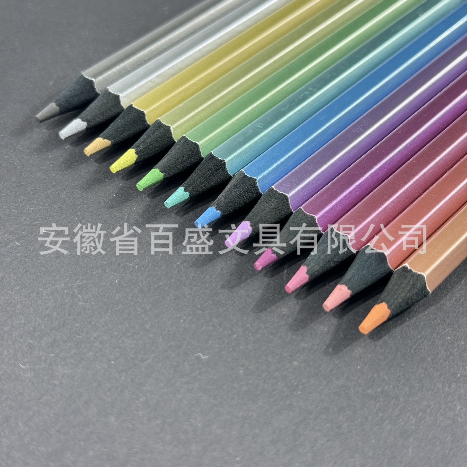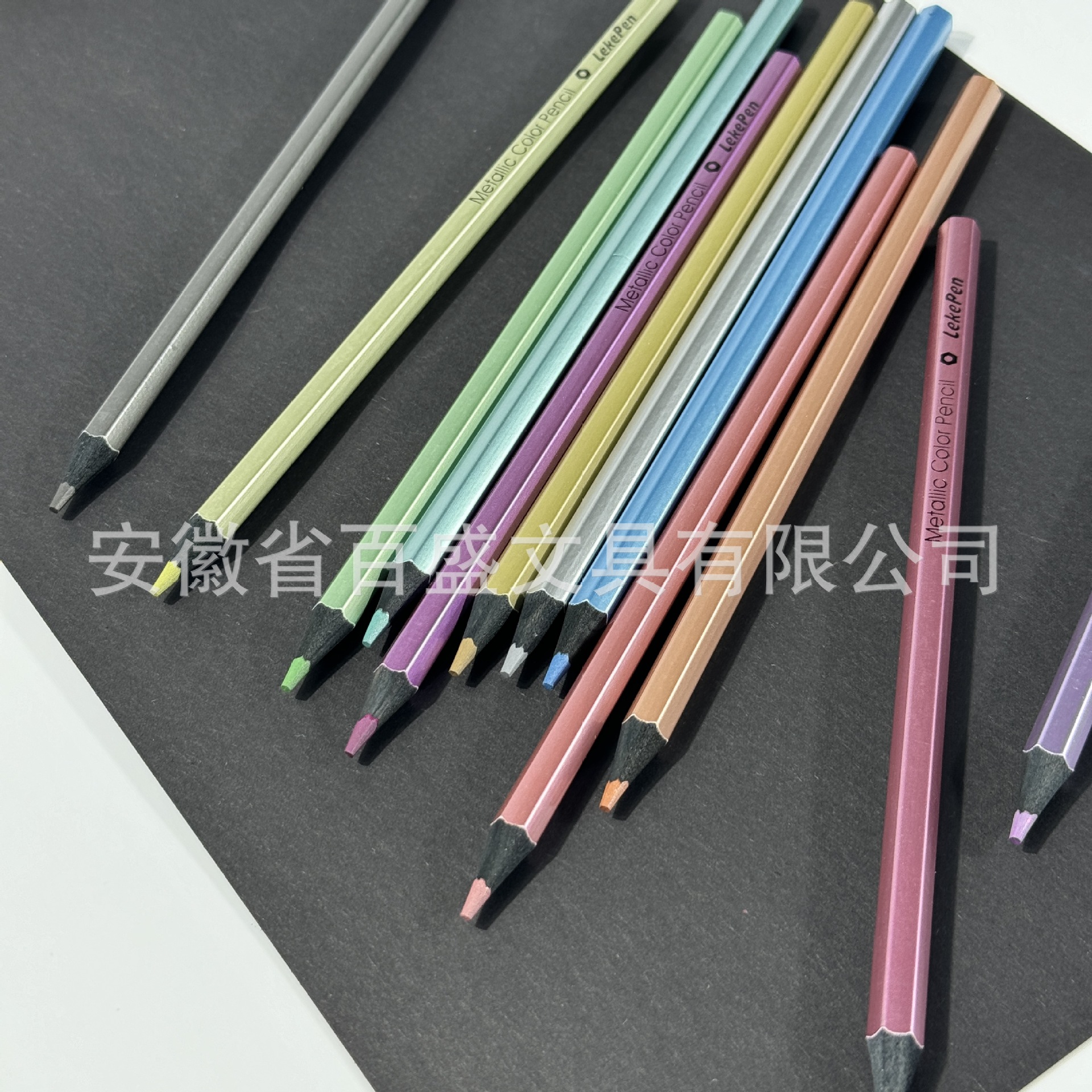 국경 검은 나무 금속 색상 12 색 연필 어린이 창조적 인 낙서 그림 컬러 펜 세트 공장 직접 판매