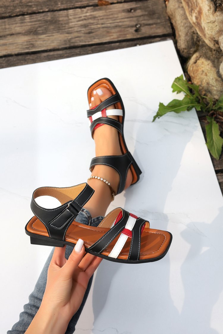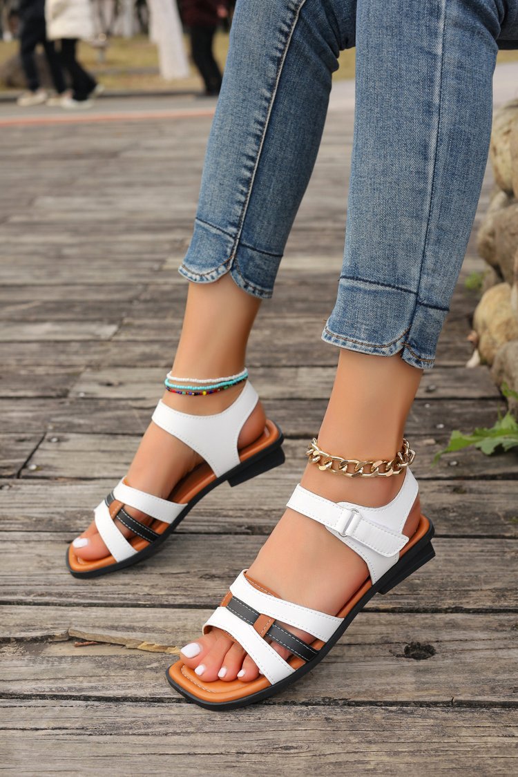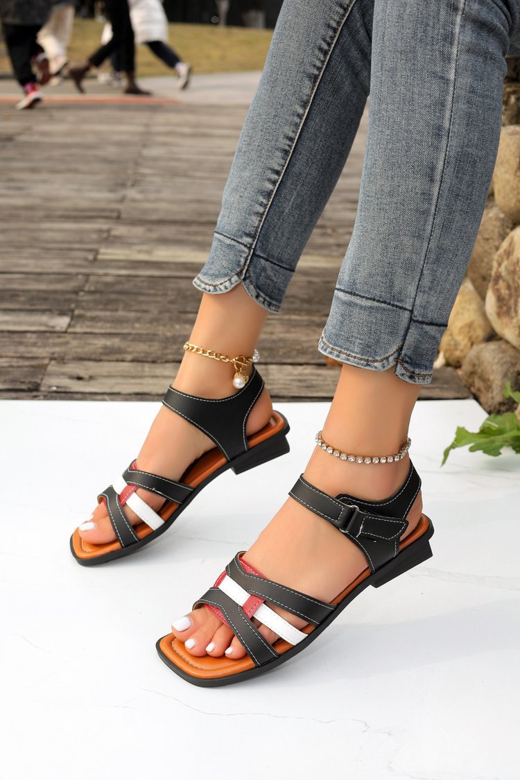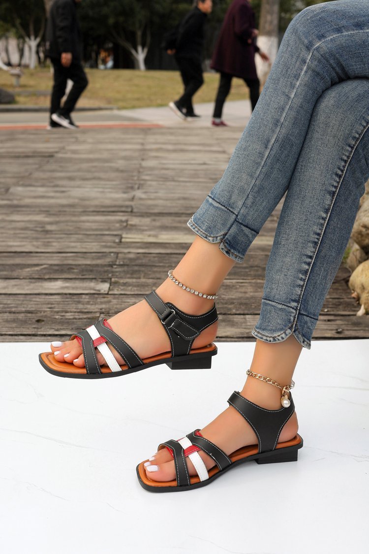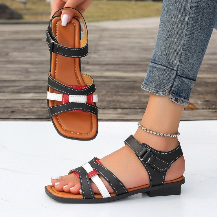 대외 무역 여성 신발 2024 여름 새로운 유럽과 미국의 레트로 스퀘어 힐링 여성 로마 신발 크로스 버클 여성용 샌들스토어 가기