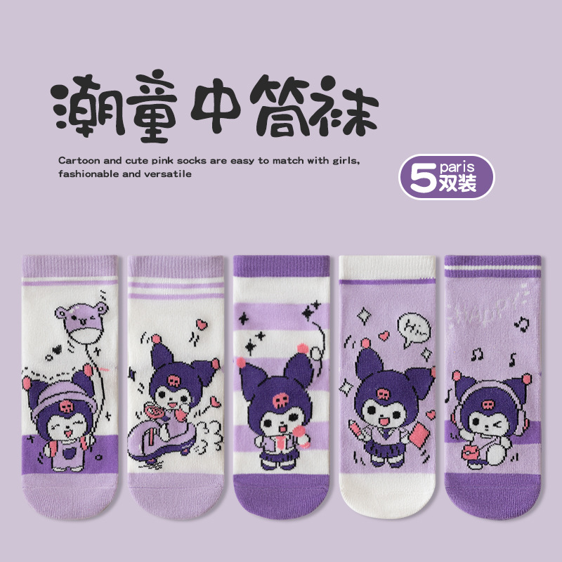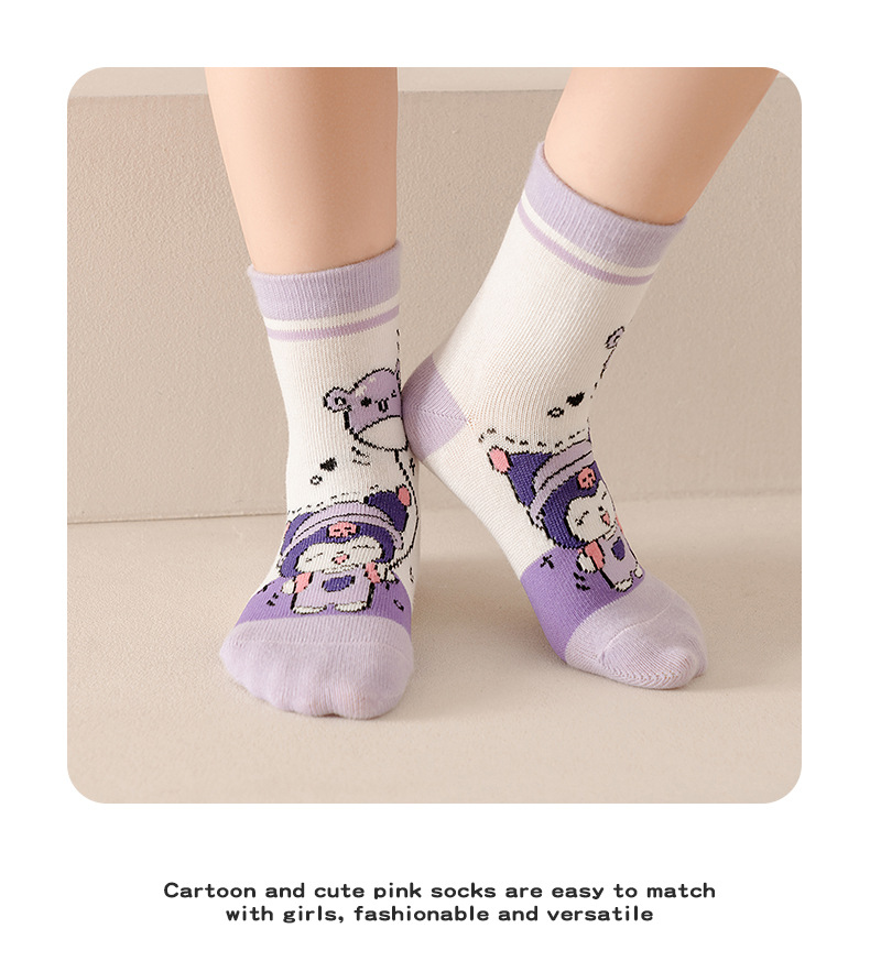 Kulomi Girls 중간 길이 양말 24 가을 새 달콤한 레이디 공주 양말 한국 만화 어린이 아기 양말