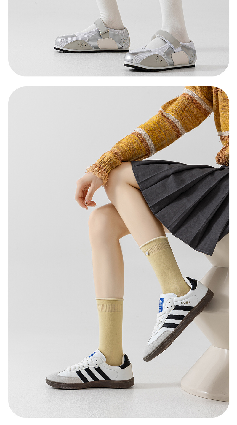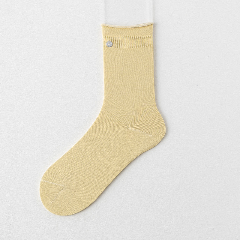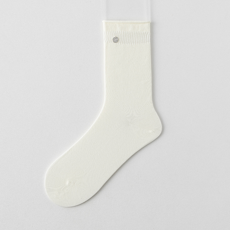 여성용 양말 실버 버클 롤업 여성용 중간 길이 양말 캐주얼 통기성 보풀 방지 평평한 편안한 면 양말 미끄럼 방지 땀 흡수