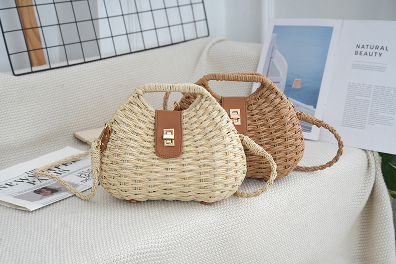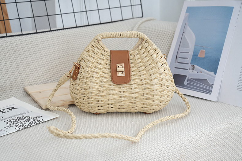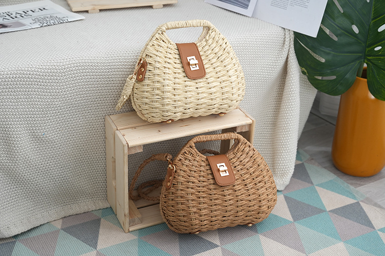 한국 스타일 크로스 바디 백 여성용 가방 여름 해변 해변 휴가 스타일 밀짚 프레임 핸드백의 새 버전