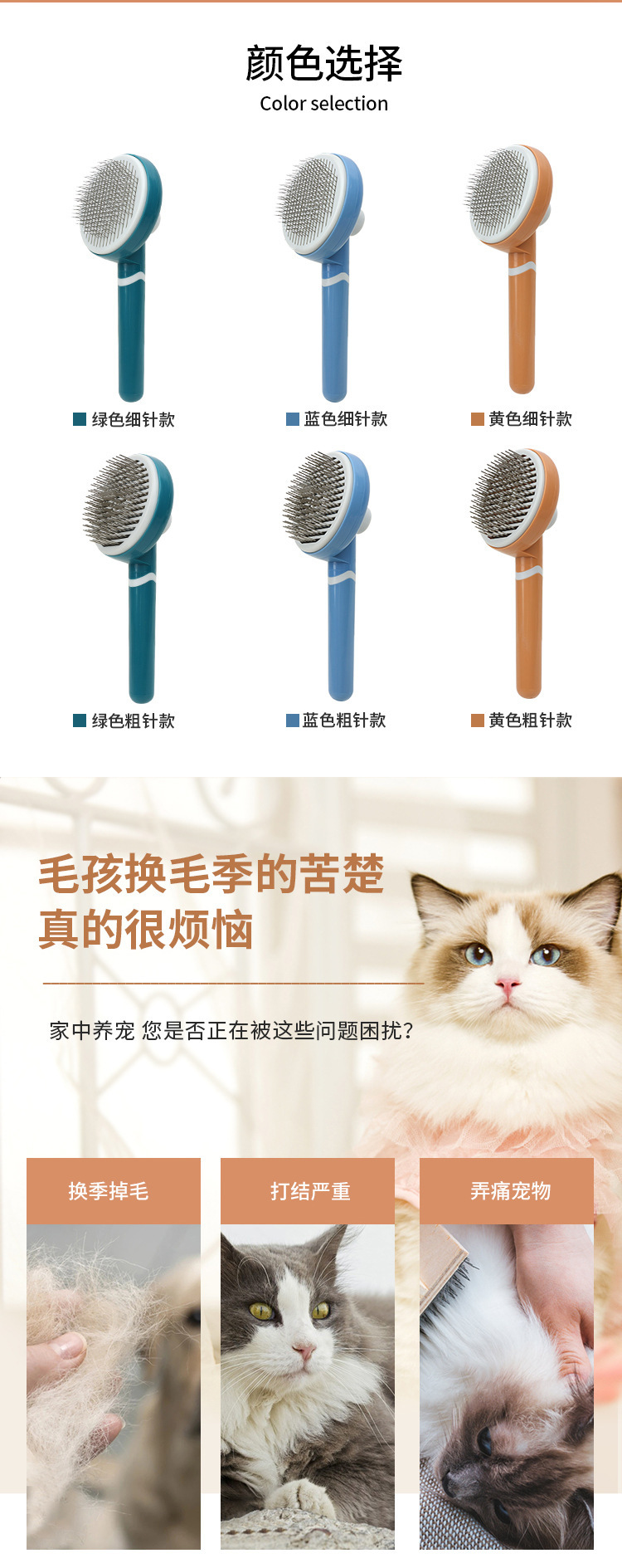 애완 동물 빗 고양이 자동 녹는 빗 아름다움 자기 청소 바늘 빗 개 머리 제거 빗 고양이와 개 유니버설 애완 동물 제품스토어 가기