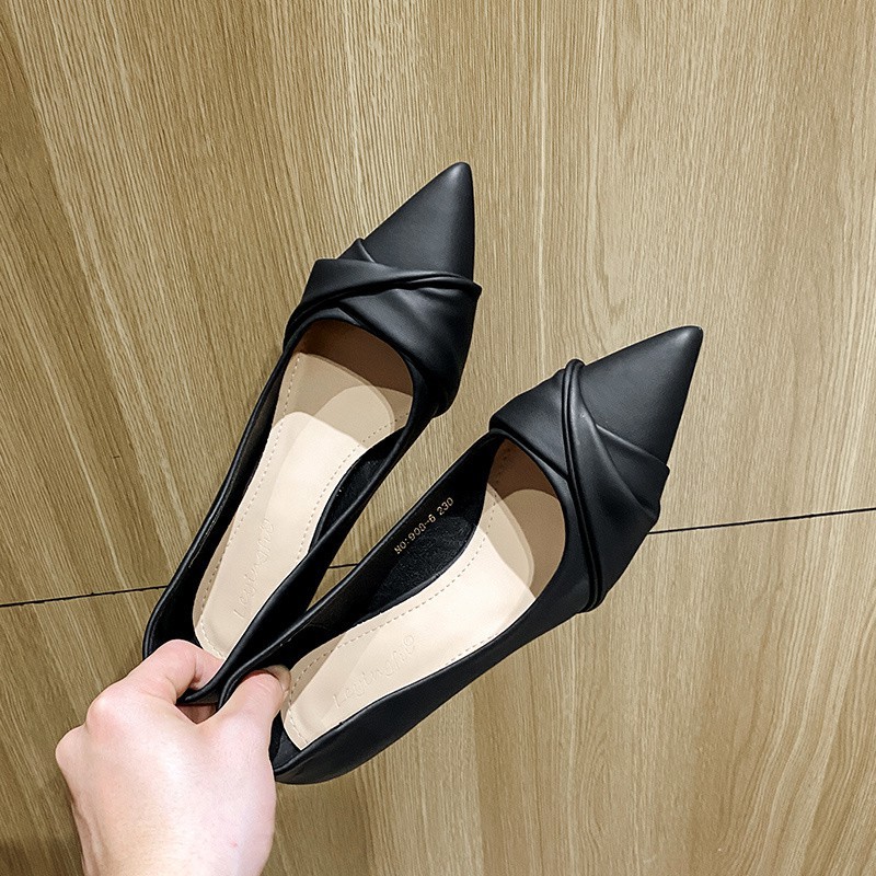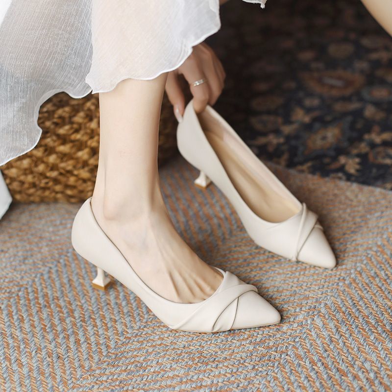 프랑스 하이힐 여성용 얇은 뒤꿈치 5cm 베이지 우아한 뾰족한 3cm 부드러운 가죽 신발 스커트 2024 피곤하지 않은 발 싱글스토어 가기