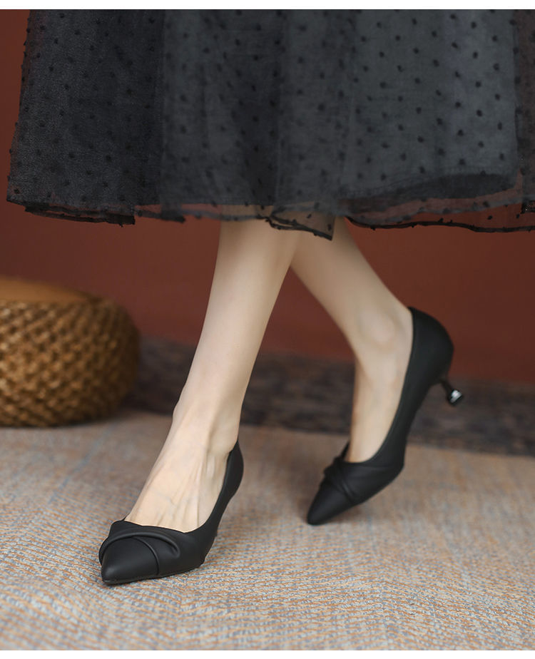 프랑스 하이힐 여성용 얇은 뒤꿈치 5cm 베이지 우아한 뾰족한 3cm 부드러운 가죽 신발 스커트 2024 피곤하지 않은 발 싱글