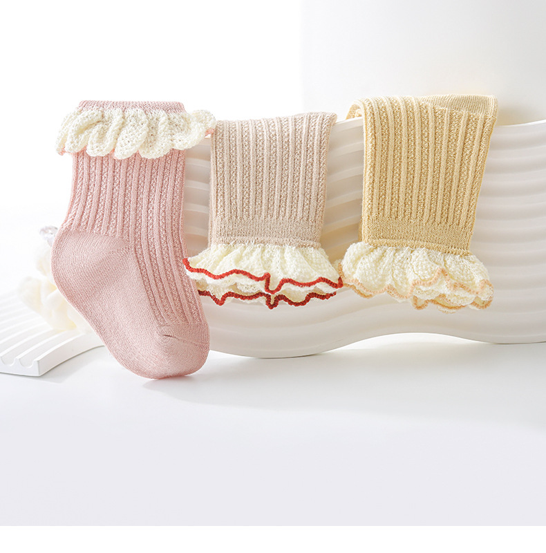 공주 레이스 레이스 신생아 양말 아기 미드 튜브 양말 뼈없는 넓은 입 비 다리 소녀 양말 클래스 A 코튼