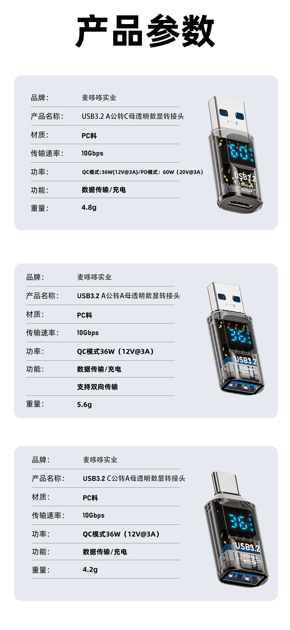 USB Type-C 디지털 디스플레이 어댑터 10Gb 전송 전류 전압 전원 지능형 디지털 디스플레이 컨버터스토어 가기