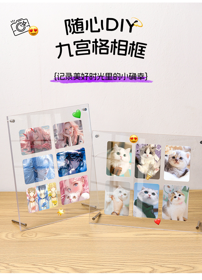 아크릴 사진 프레임 디스플레이 스탠드 작은 카드 폴라로이드 3 인치 사진 프레임 투명 Jiugongge 사진 프레임 사용자 정의스토어 가기