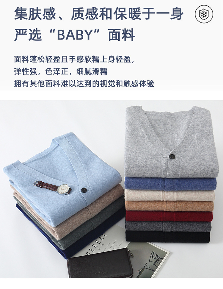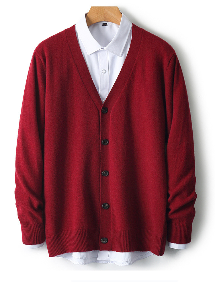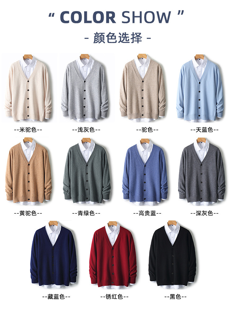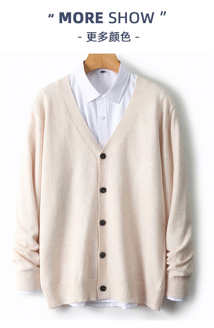 2025 신상 남성용 울 가디건, 브이넥 솔리드 컬러 긴팔 스웨터, 루즈하고 캐주얼하며 활용도가 높은 캐시미어 니트 재킷스토어 가기