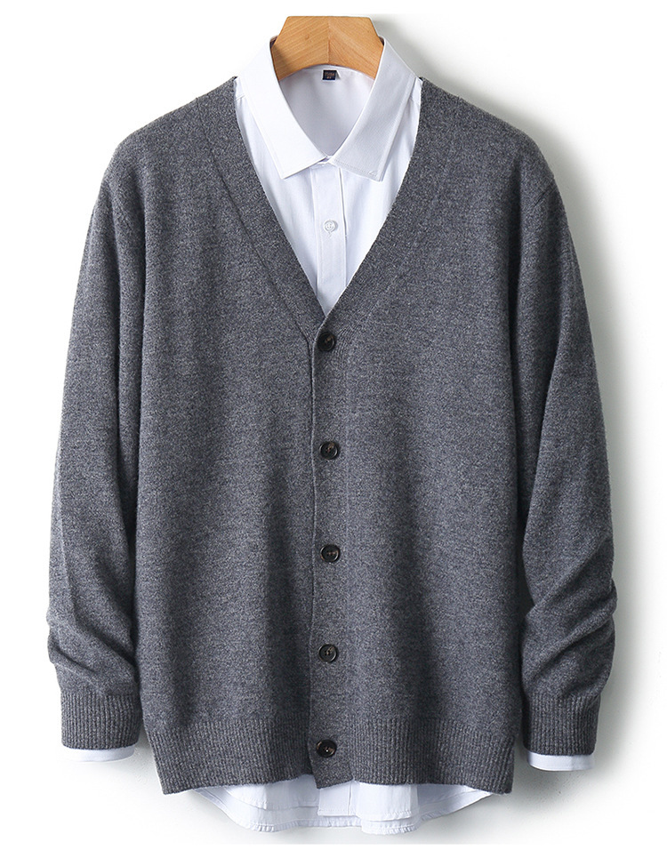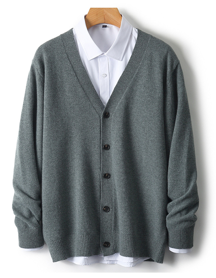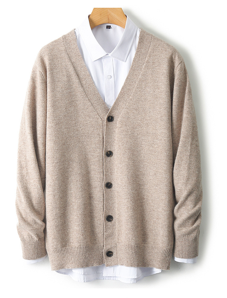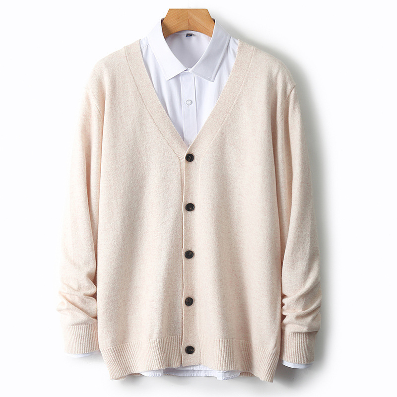 2025 신상 남성용 울 가디건, 브이넥 솔리드 컬러 긴팔 스웨터, 루즈하고 캐주얼하며 활용도가 높은 캐시미어 니트 재킷