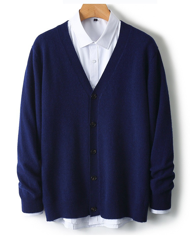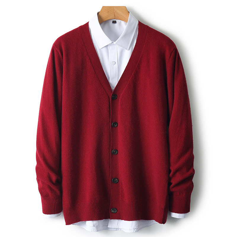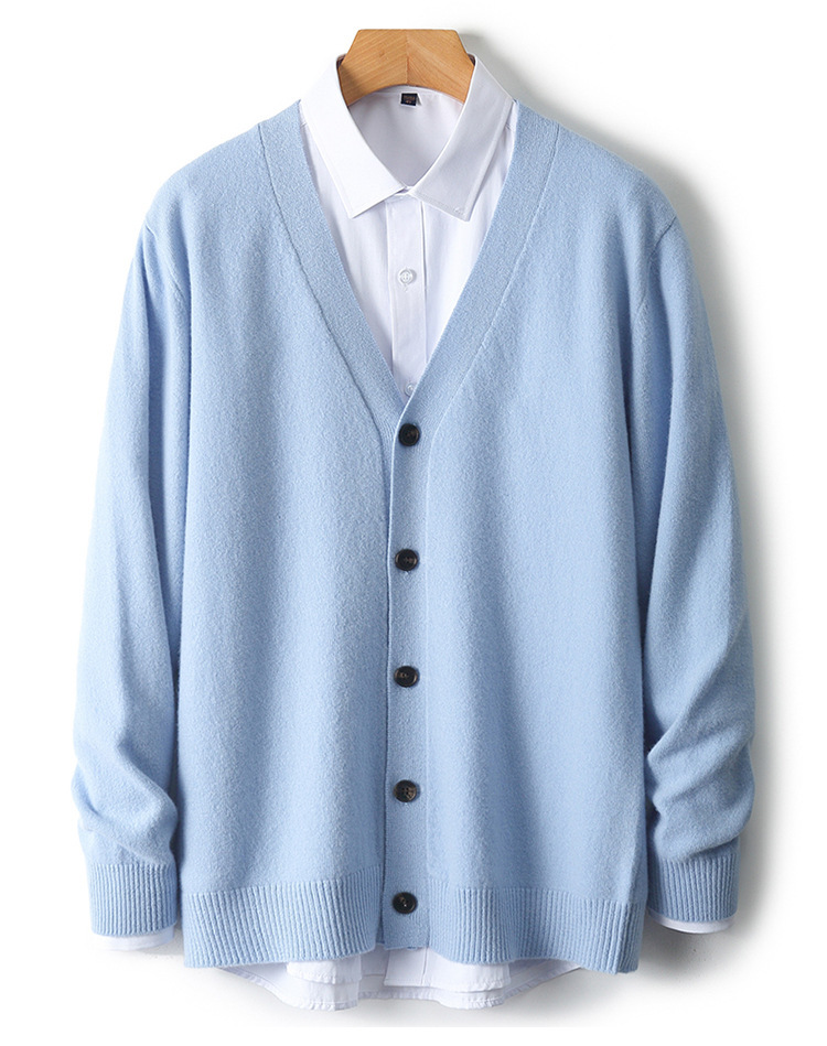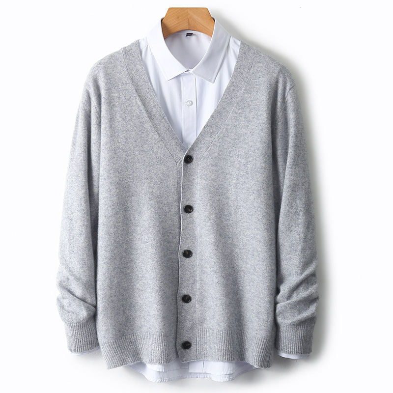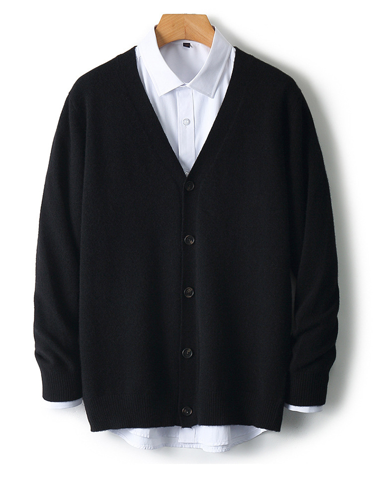 2025 신상 남성용 울 가디건, 브이넥 솔리드 컬러 긴팔 스웨터, 루즈하고 캐주얼하며 활용도가 높은 캐시미어 니트 재킷