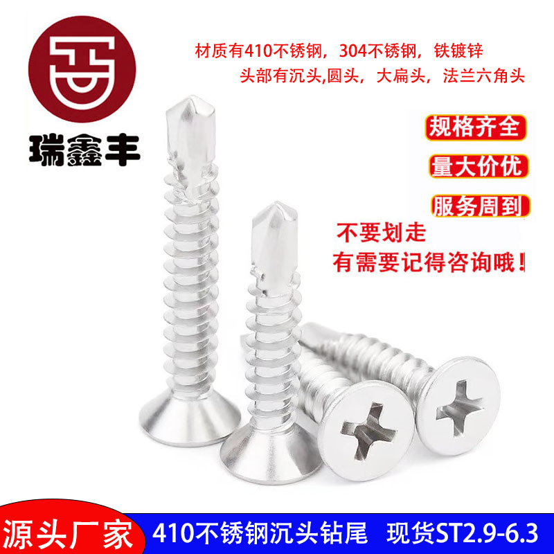 공장 410 스테인레스 스틸 카운터 침몰 헤드 드릴 테일 스크류 플랫 헤드 와시 크로스 하드 더브 테일 셀프 드릴링 스크류스토어 가기