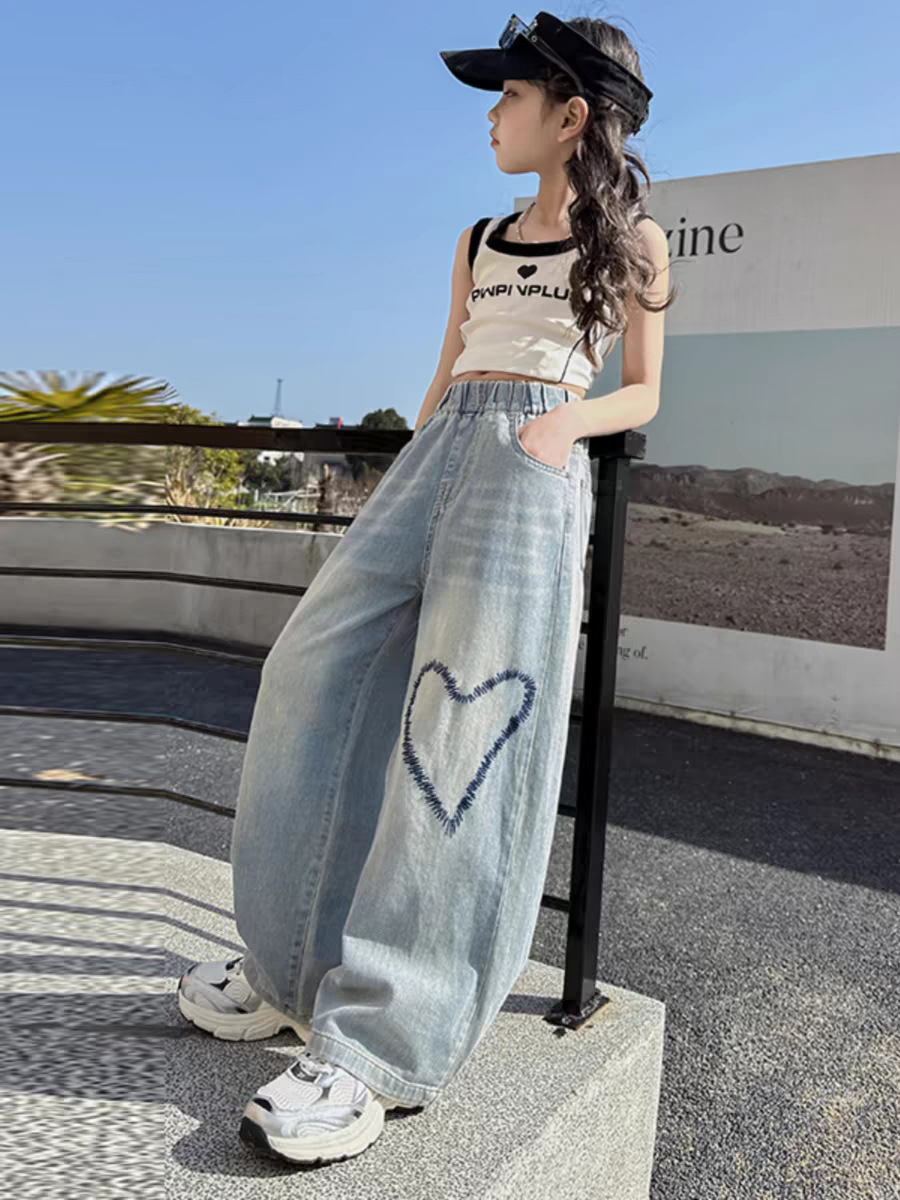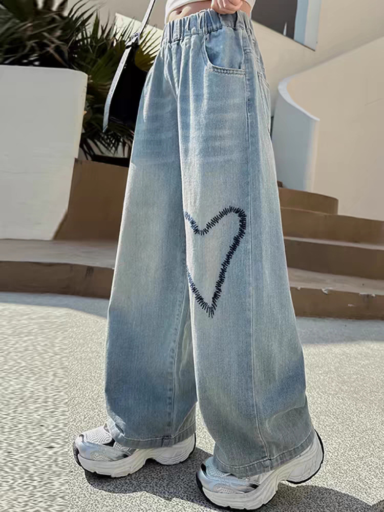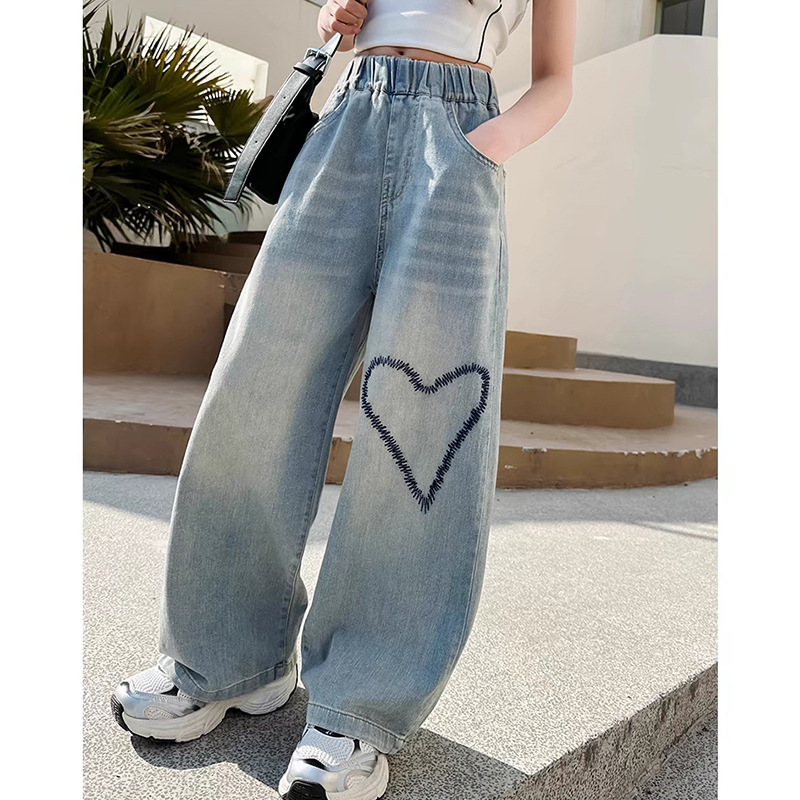 여아 청바지 2025 봄 가을 새로운 스타일 중대형 아동 한국식 스트레이트 팬츠, 여아용 패셔너블 캐주얼 바지
