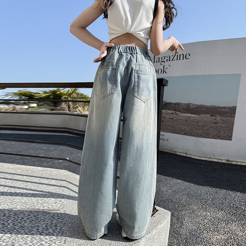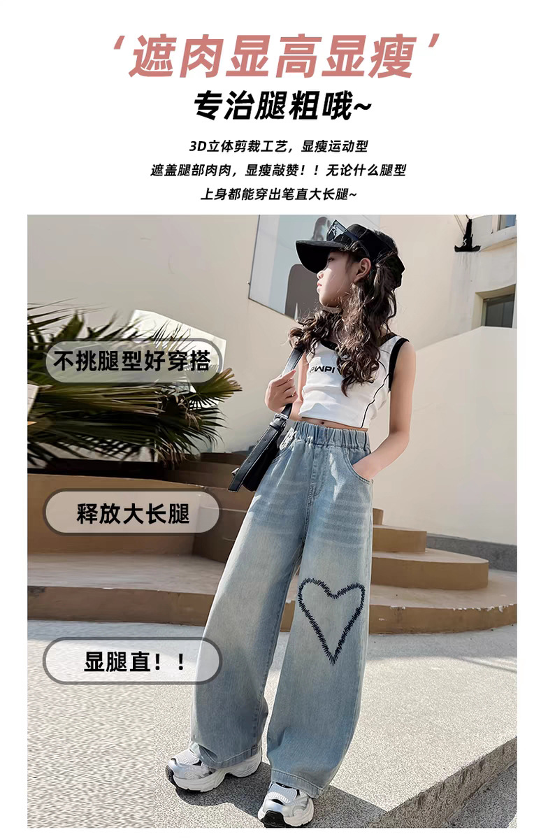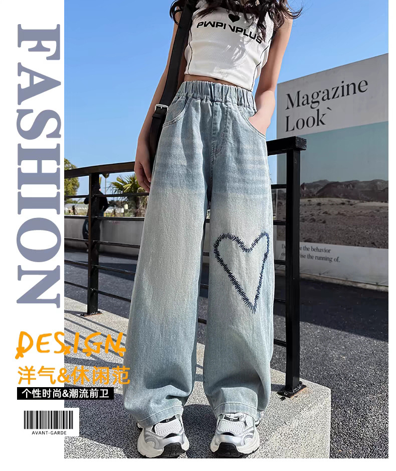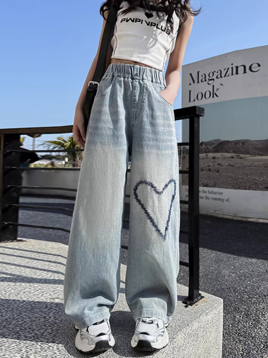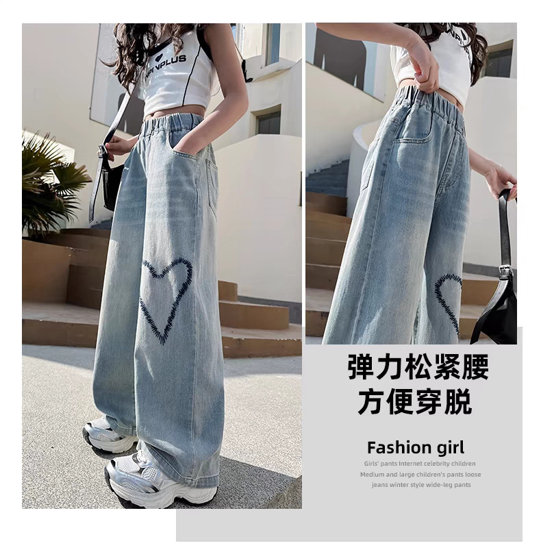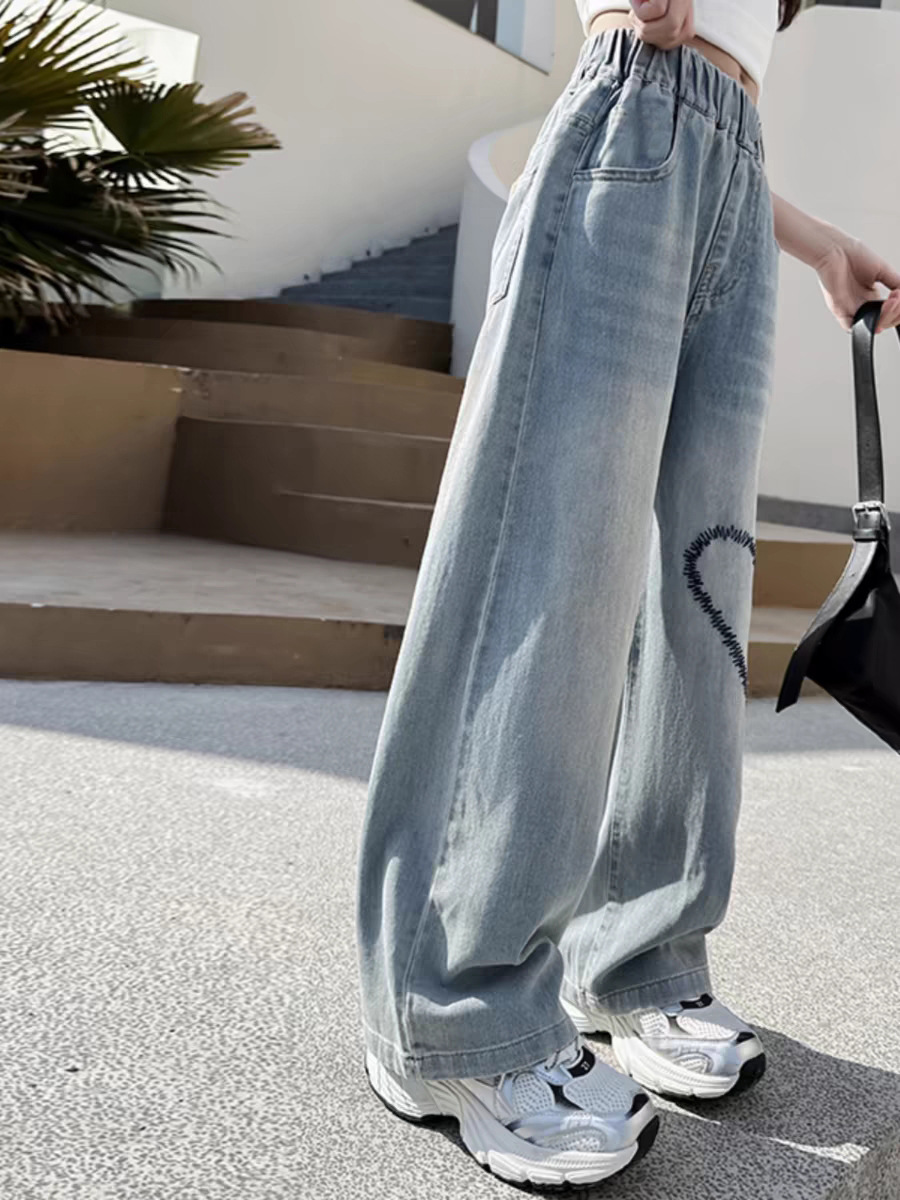 여아 청바지 2025 봄 가을 새로운 스타일 중대형 아동 한국식 스트레이트 팬츠, 여아용 패셔너블 캐주얼 바지스토어 가기