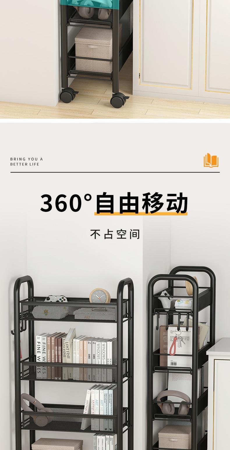 이동식 책장 바닥 보관 랙 철 트롤리 보관 랙 기숙사 테이블 바닥 계층화 된 책장 선반스토어 가기