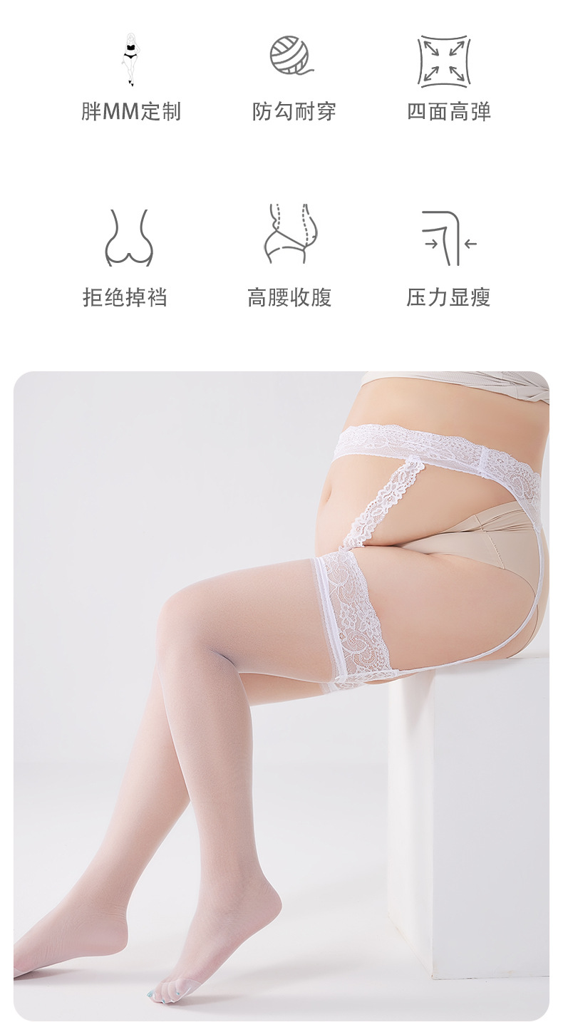 국경 간 플러스 사이즈 섹시한 레이스 멜빵 통합 흰색 스타킹 여성 뚱뚱한 mm200 kg 유혹 초박형 스타킹스토어 가기