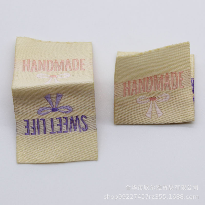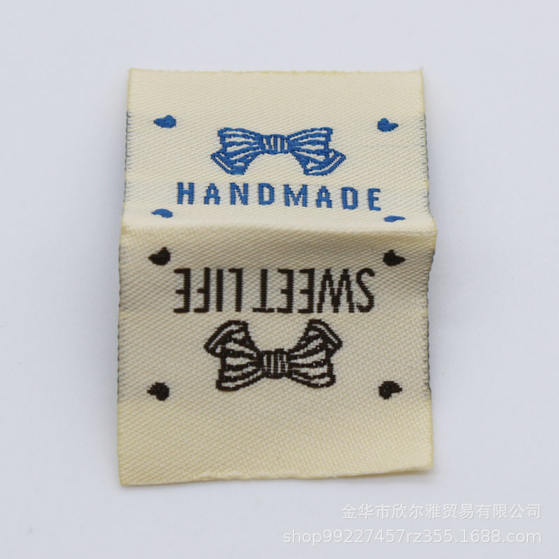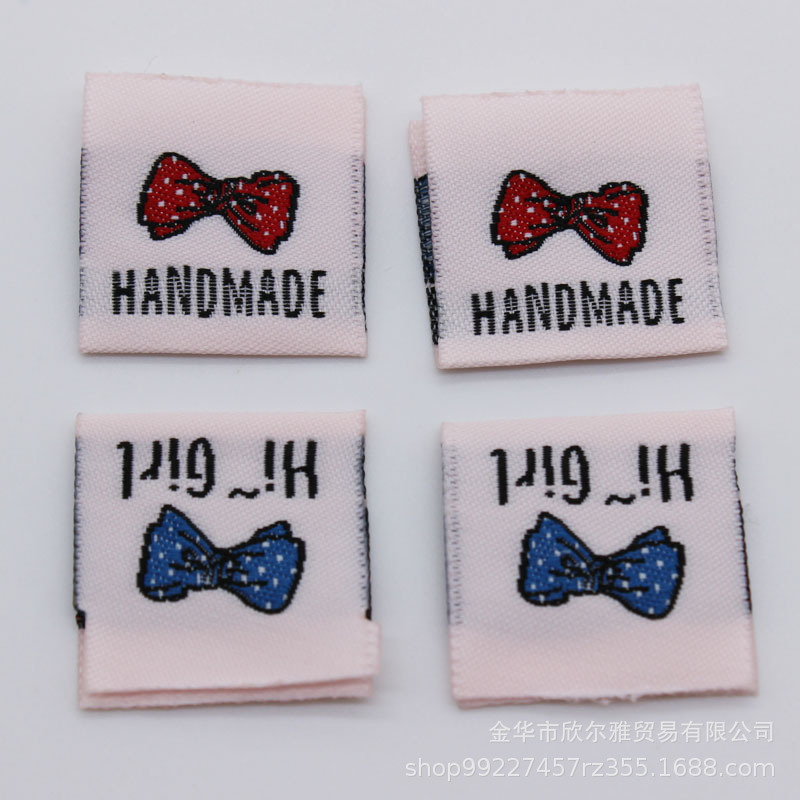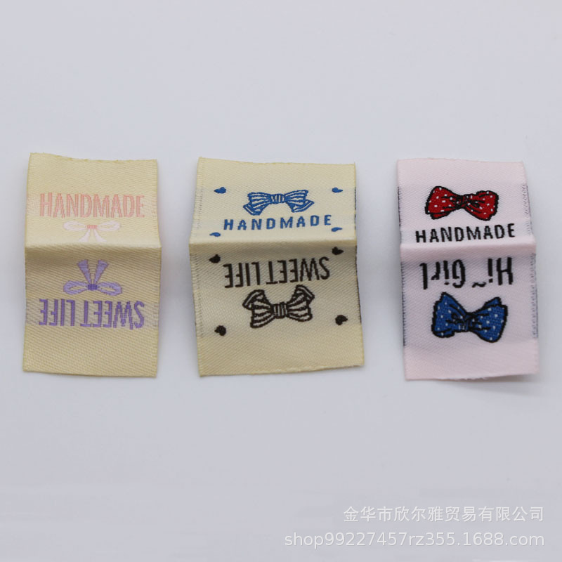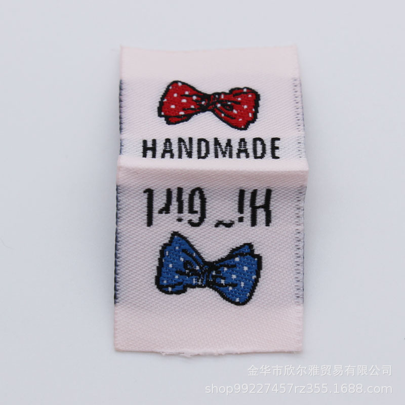 HANDMADE彩色蝴蝶结织标布标现货大肠发圈女装童装织唛领标商标手工制品商标