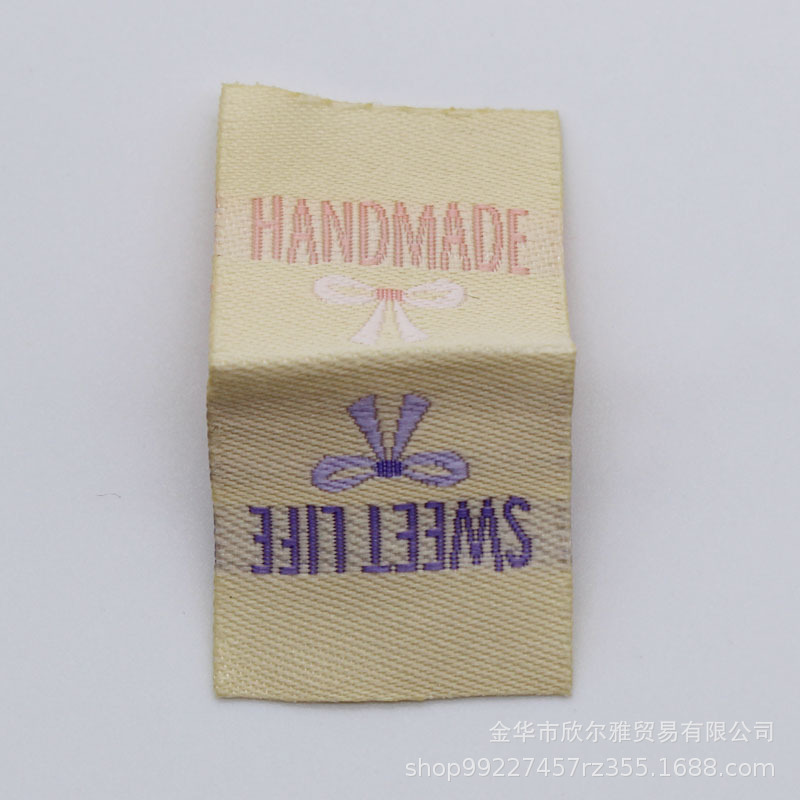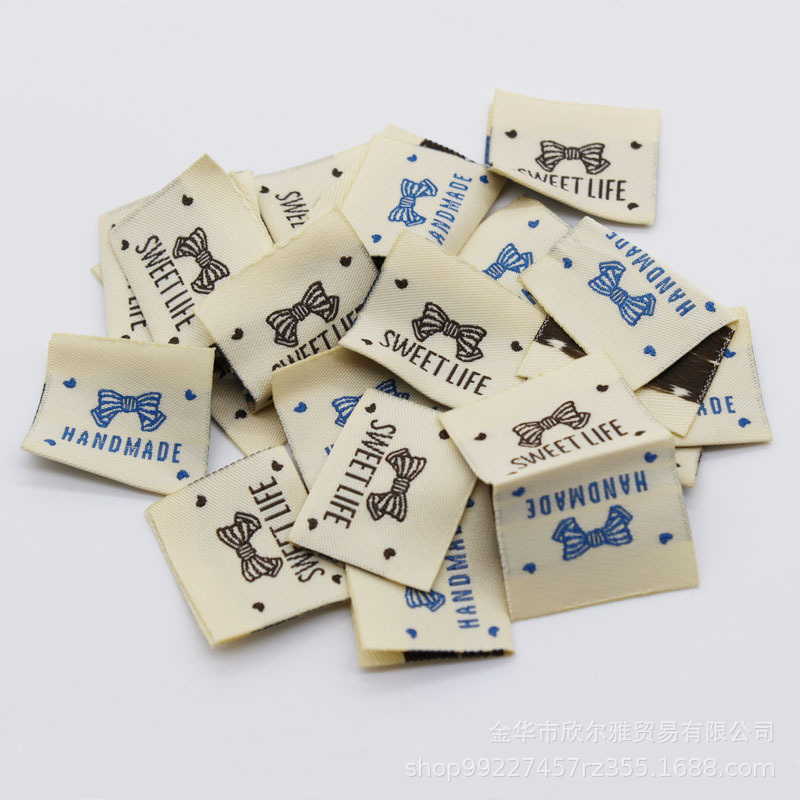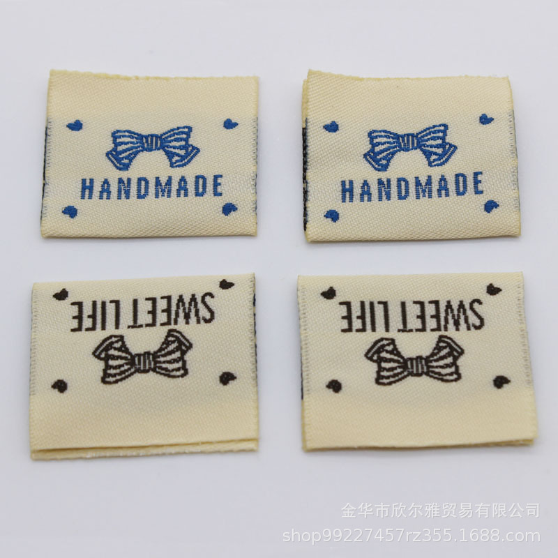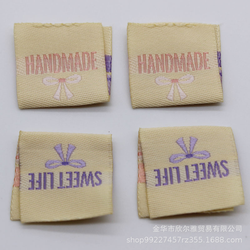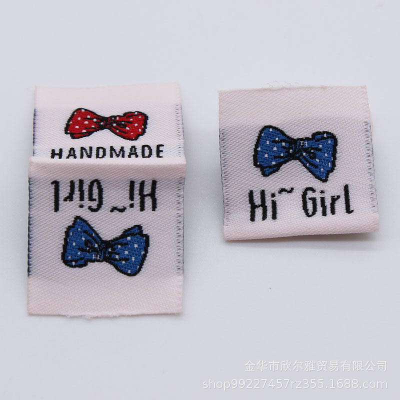 HANDMADE彩色蝴蝶结织标布标现货大肠发圈女装童装织唛领标商标手工制品商标
