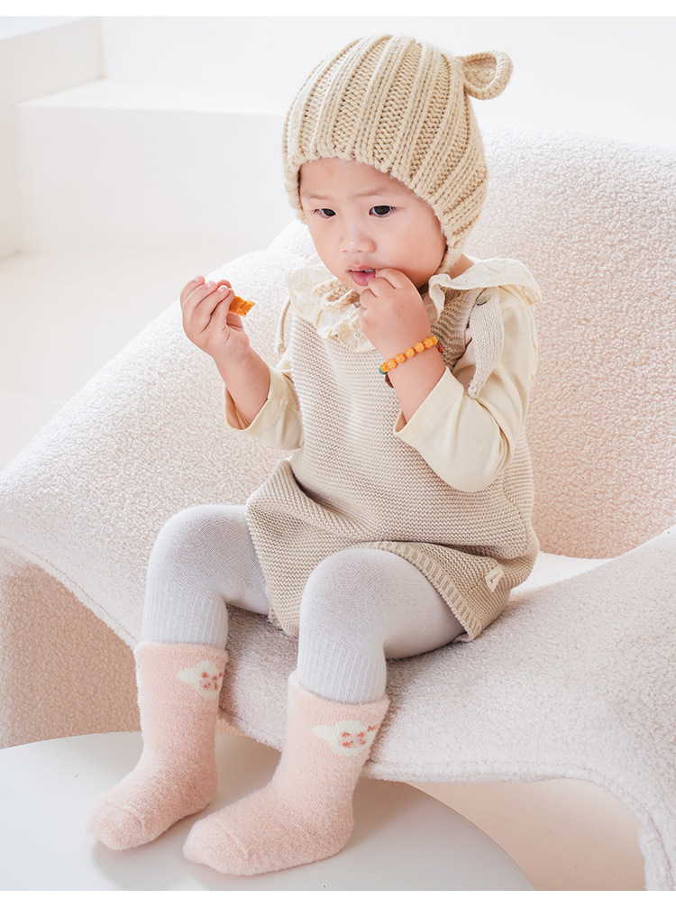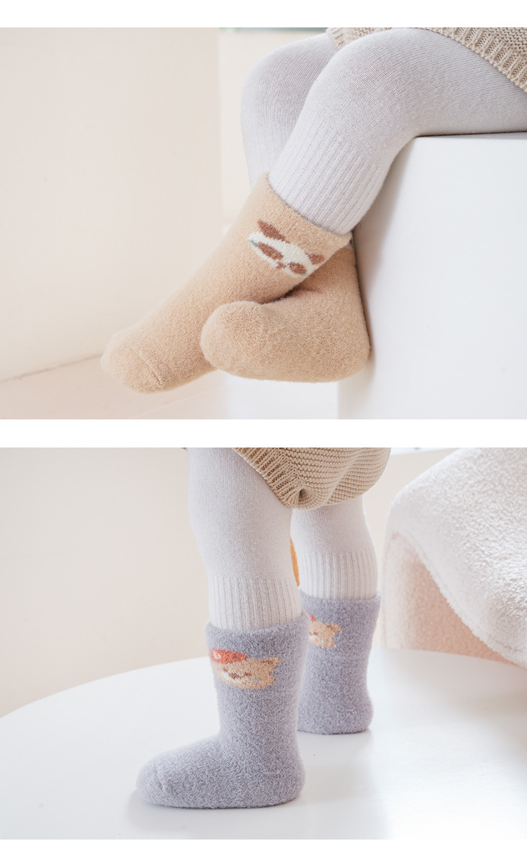 유아 가을과 겨울 기모 두꺼운 중간 배럴 Ins 트렌디 한 봉제 귀여운 아기 양말 따뜻한 느슨한 입 안티 레임 스타킹스토어 가기