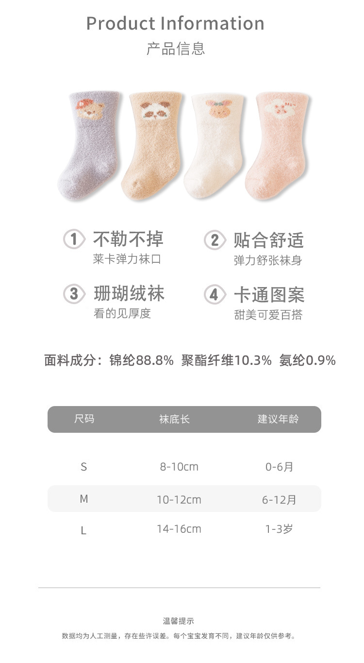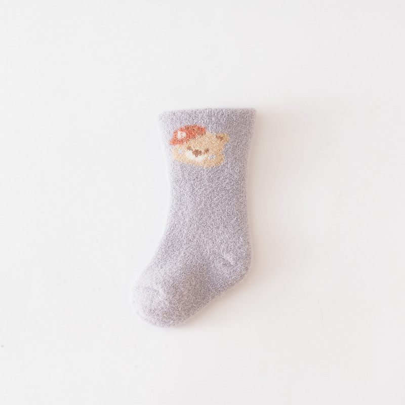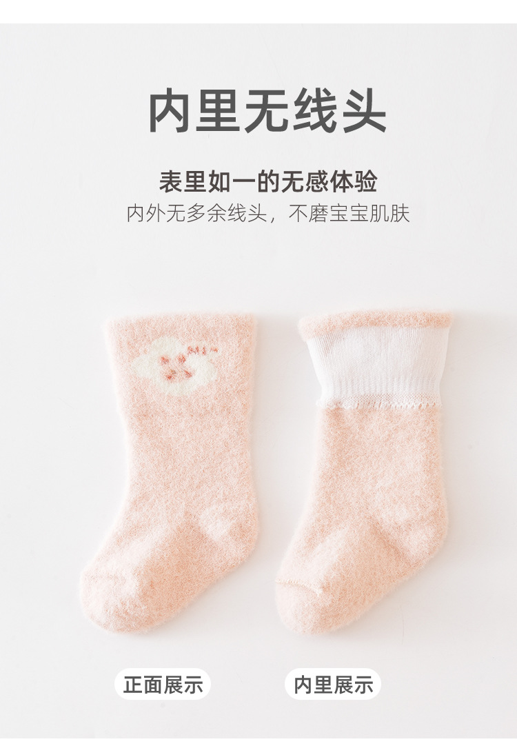 유아 가을과 겨울 기모 두꺼운 중간 배럴 Ins 트렌디 한 봉제 귀여운 아기 양말 따뜻한 느슨한 입 안티 레임 스타킹
