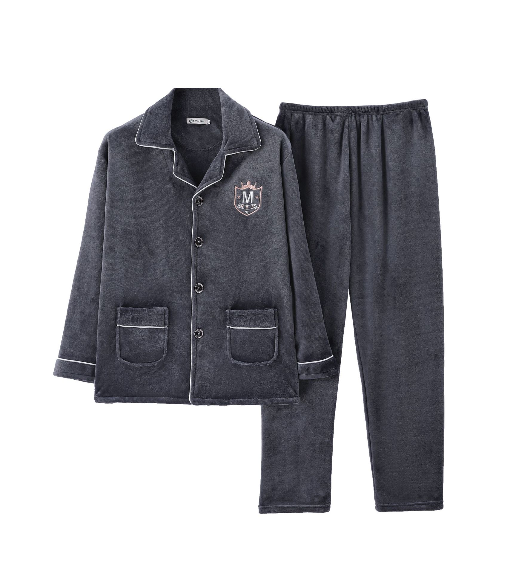 주머니가있는 공장 도매 플란넬 파자마 기모 두꺼운 가을과 겨울 남성 홈 의류 잠옷 단색 세트스토어 가기
