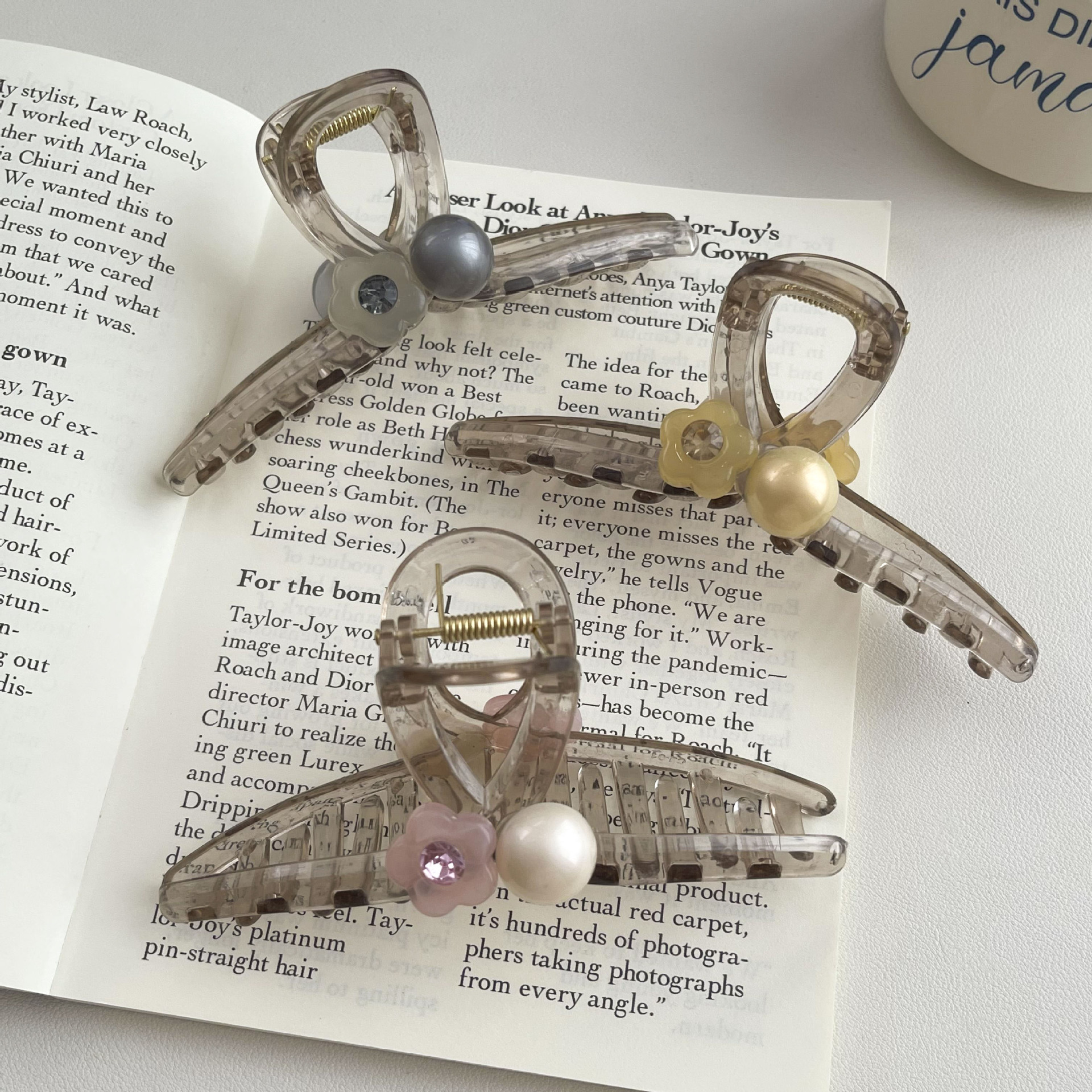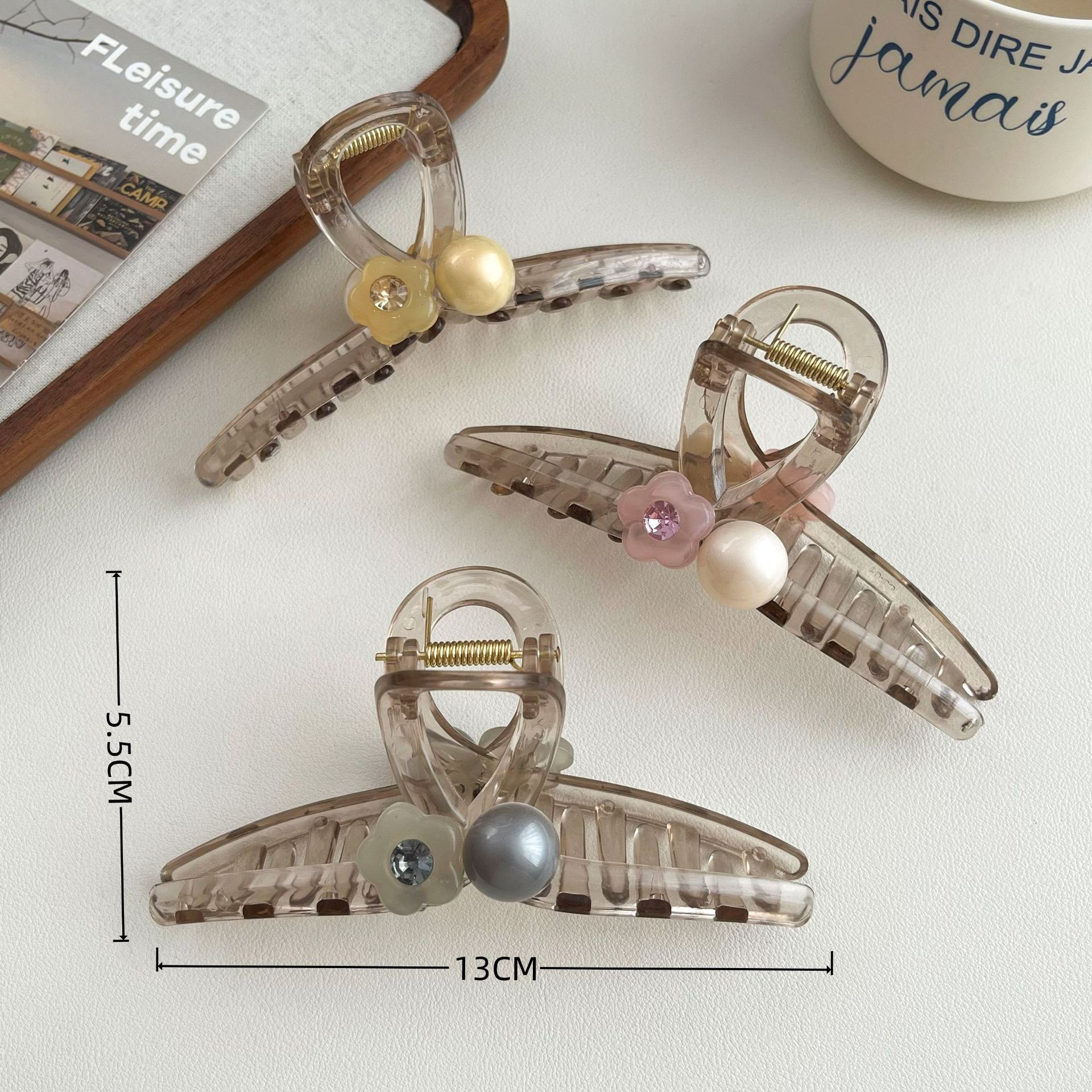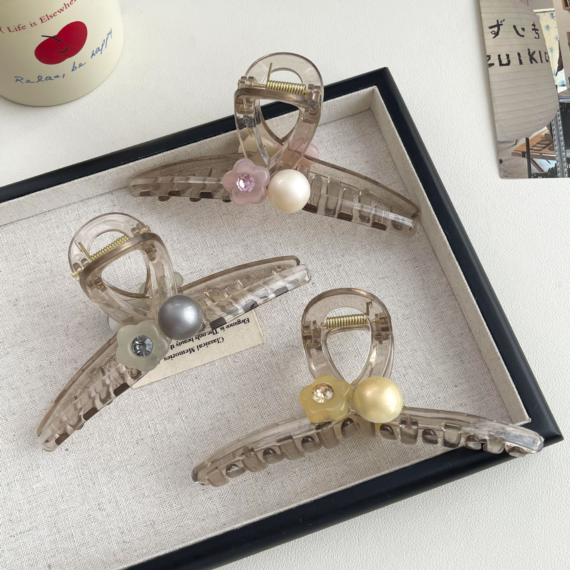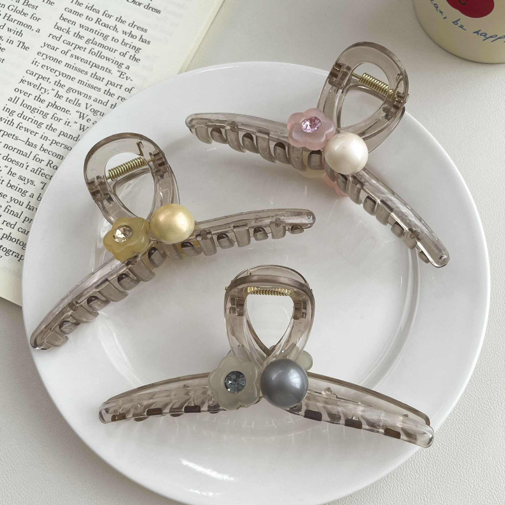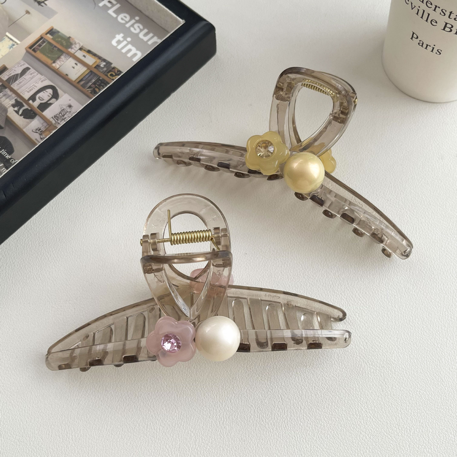 절묘한 꽃 진주 아크릴 대형 디스크 헤어 랩 클립 여성의 봄과 여름 2024 새로운 폭발 상어 클립 헤어 클립스토어 가기