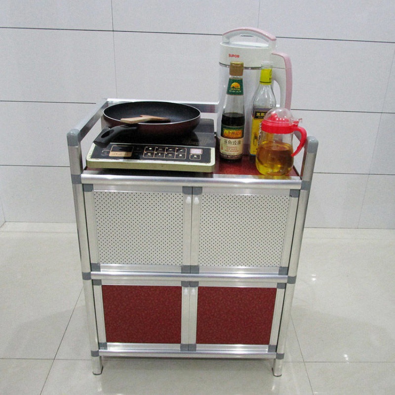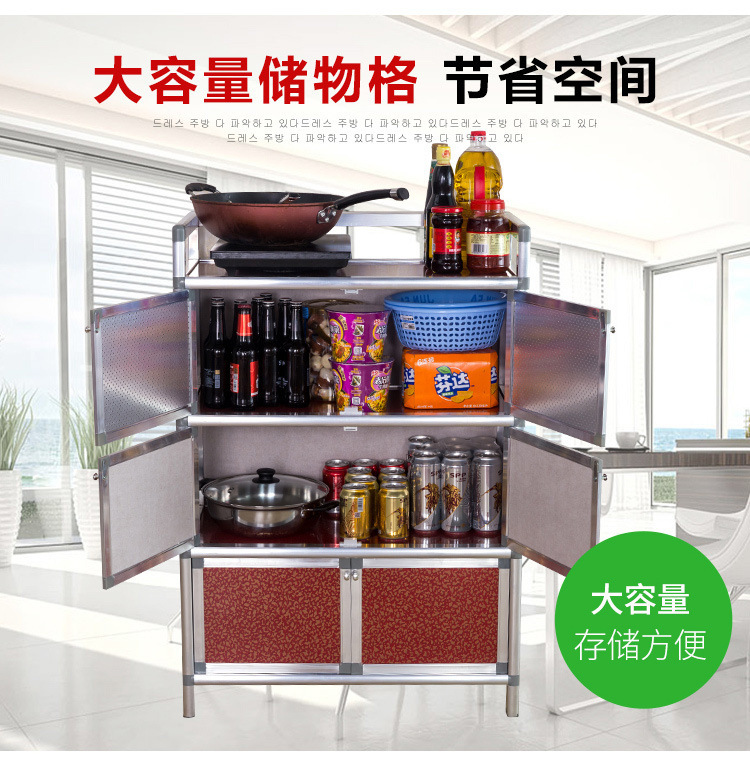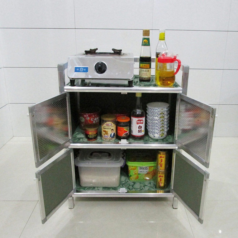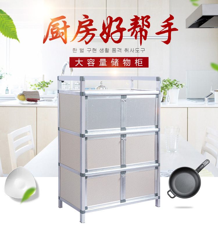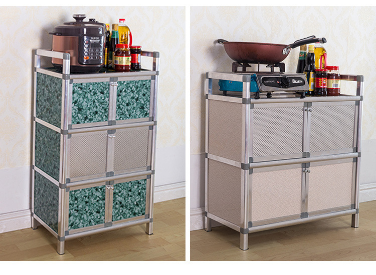 간단한 사이드 보드 녹슬지 않는 3 층 조립 찬장 거실 저장 캐비닛 보관 캐비닛 캐비닛이있는 주방 보관 랙