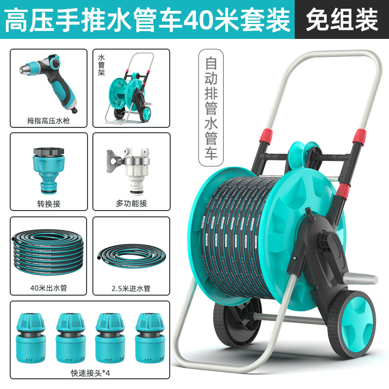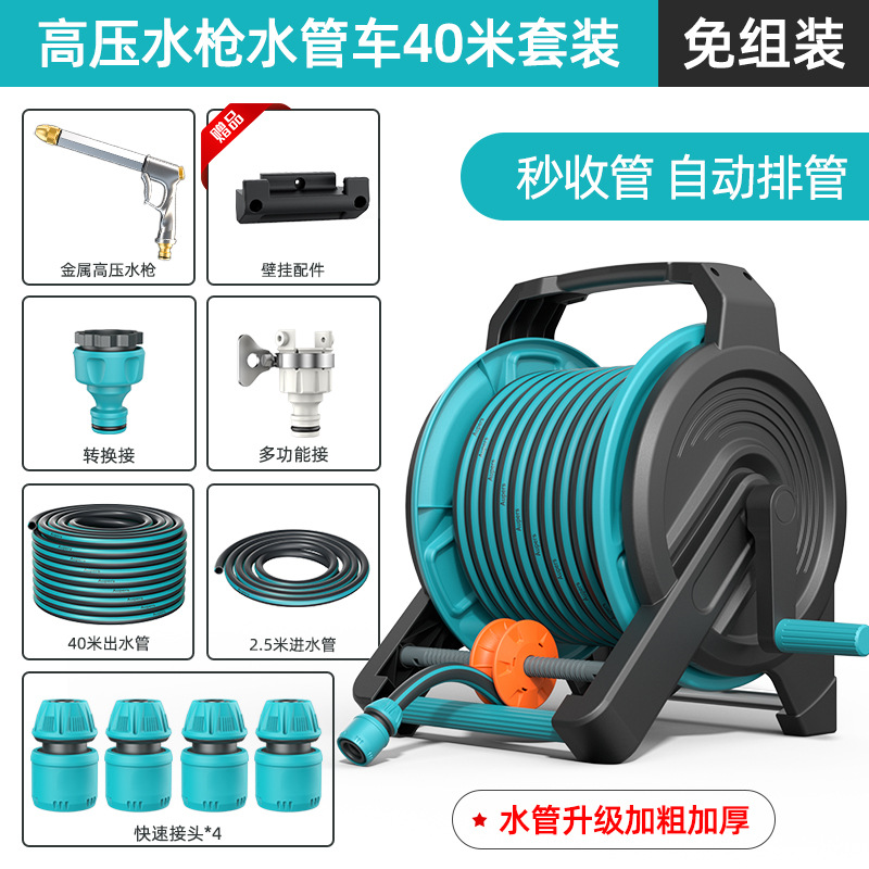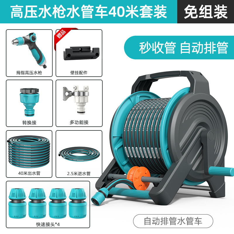 • 【自动排管】拇指高压水枪+滑轮40米水管车套装
