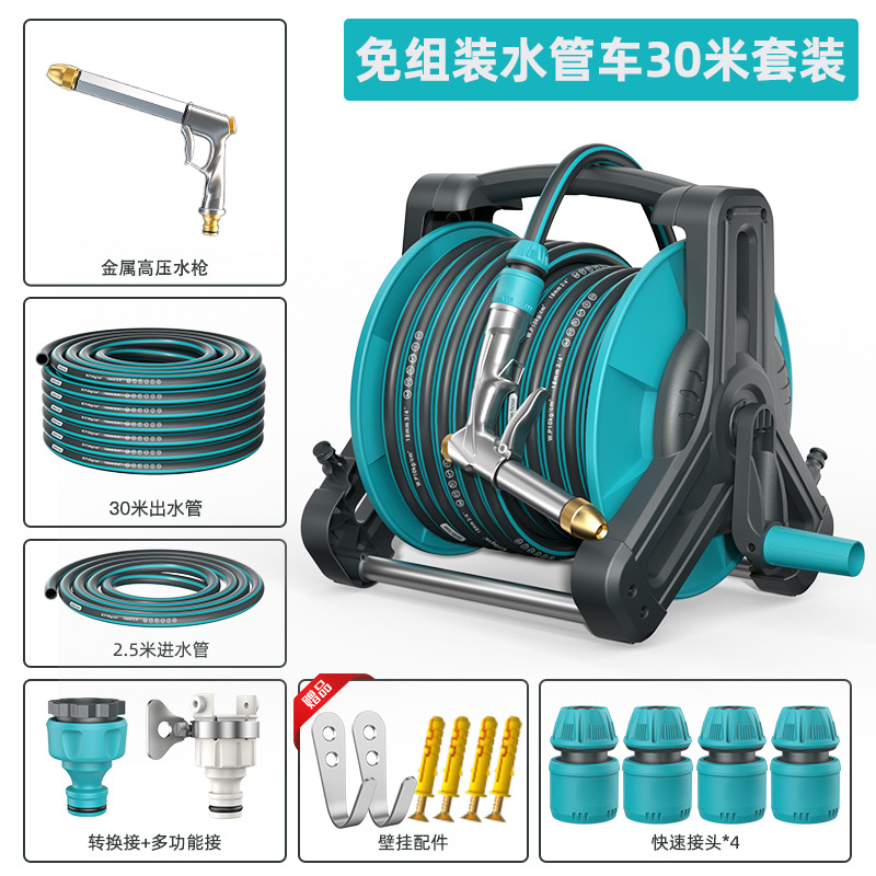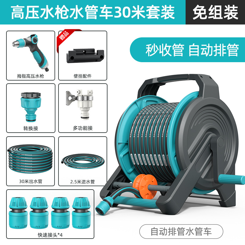 • 【自动排管】拇指高压水枪+滑轮30米水管车套装