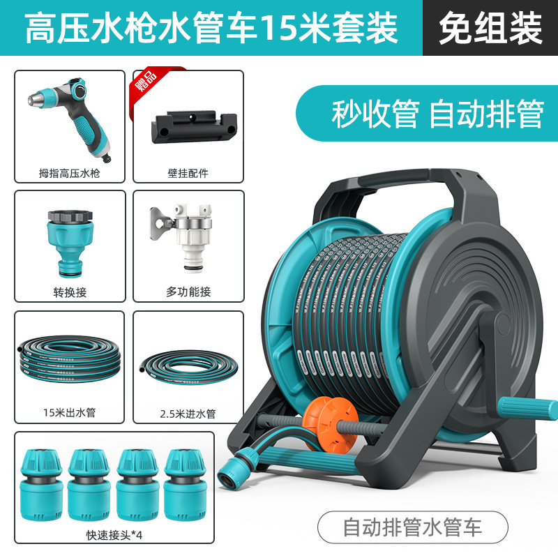 • 【自动排管】金属高压长枪+滑轮15米水管车套装