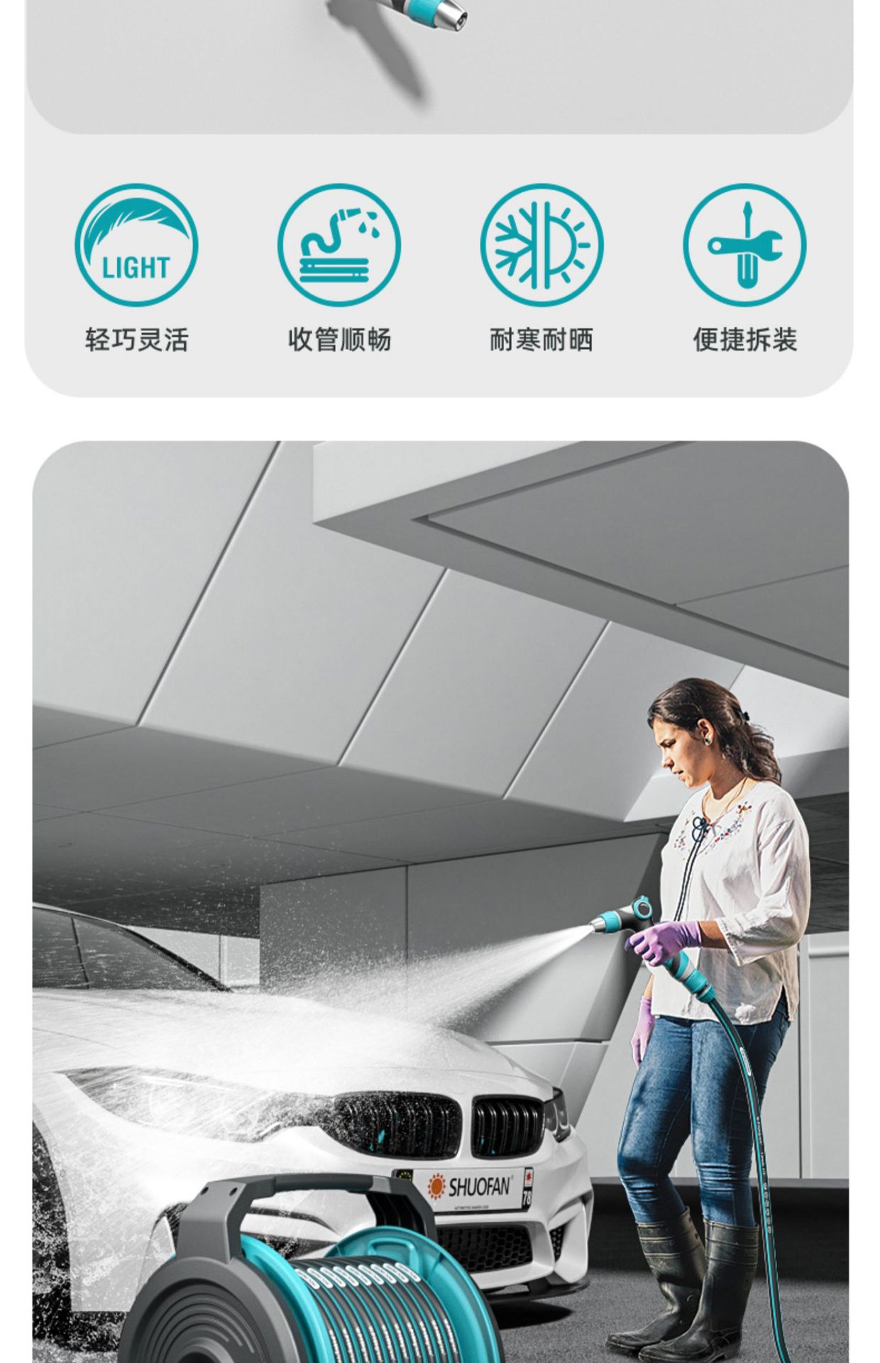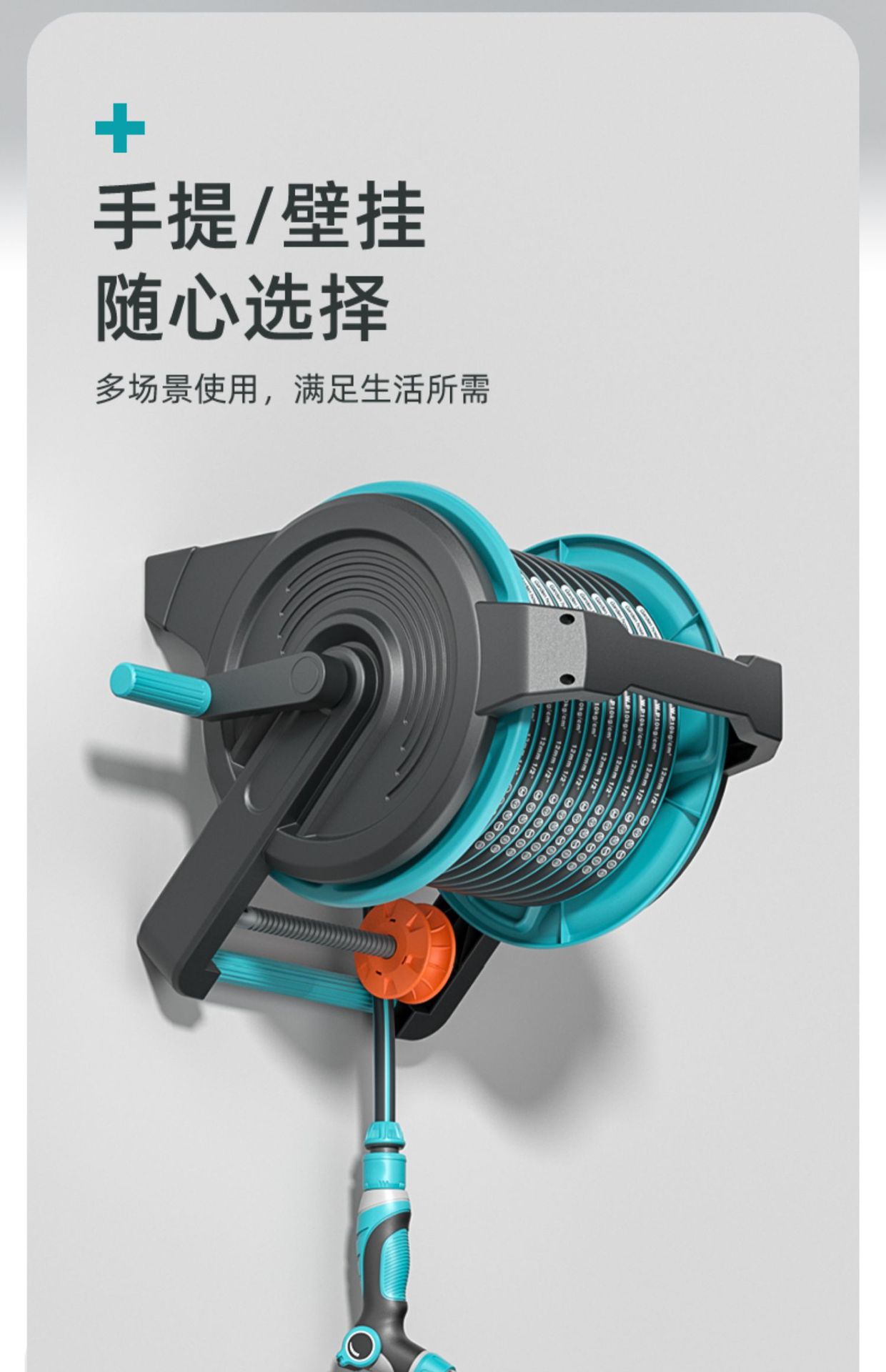 • 【自动排管】拇指高压水枪+滑轮50米水管车套装