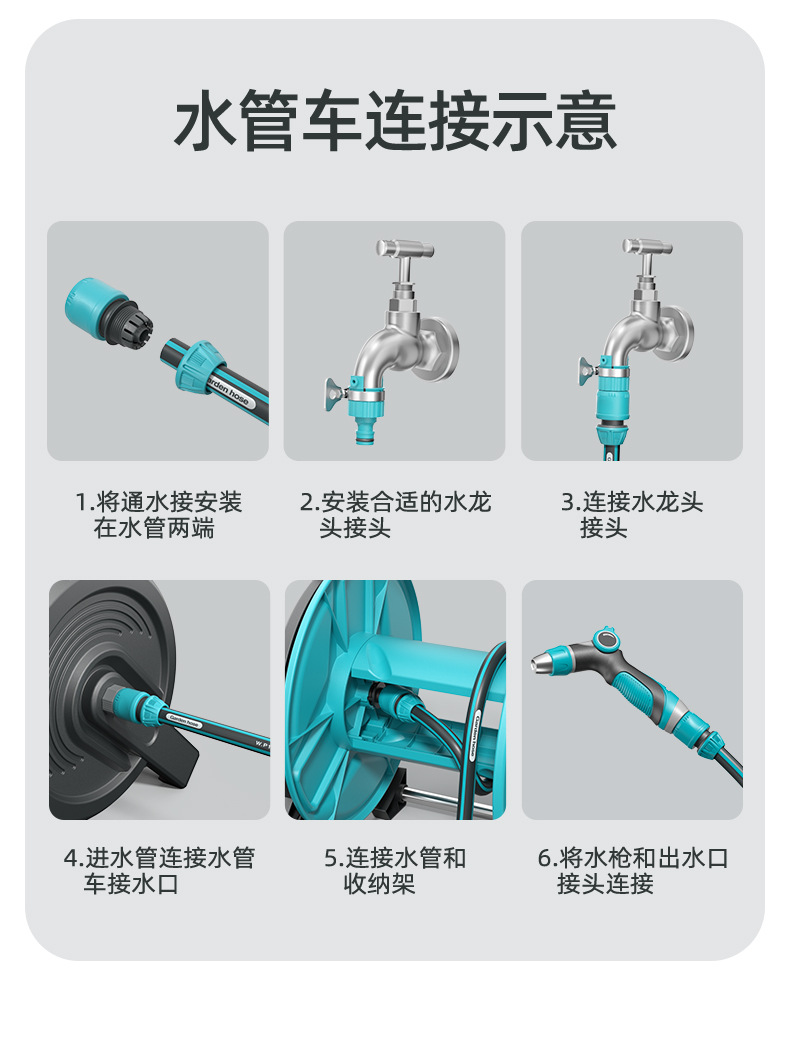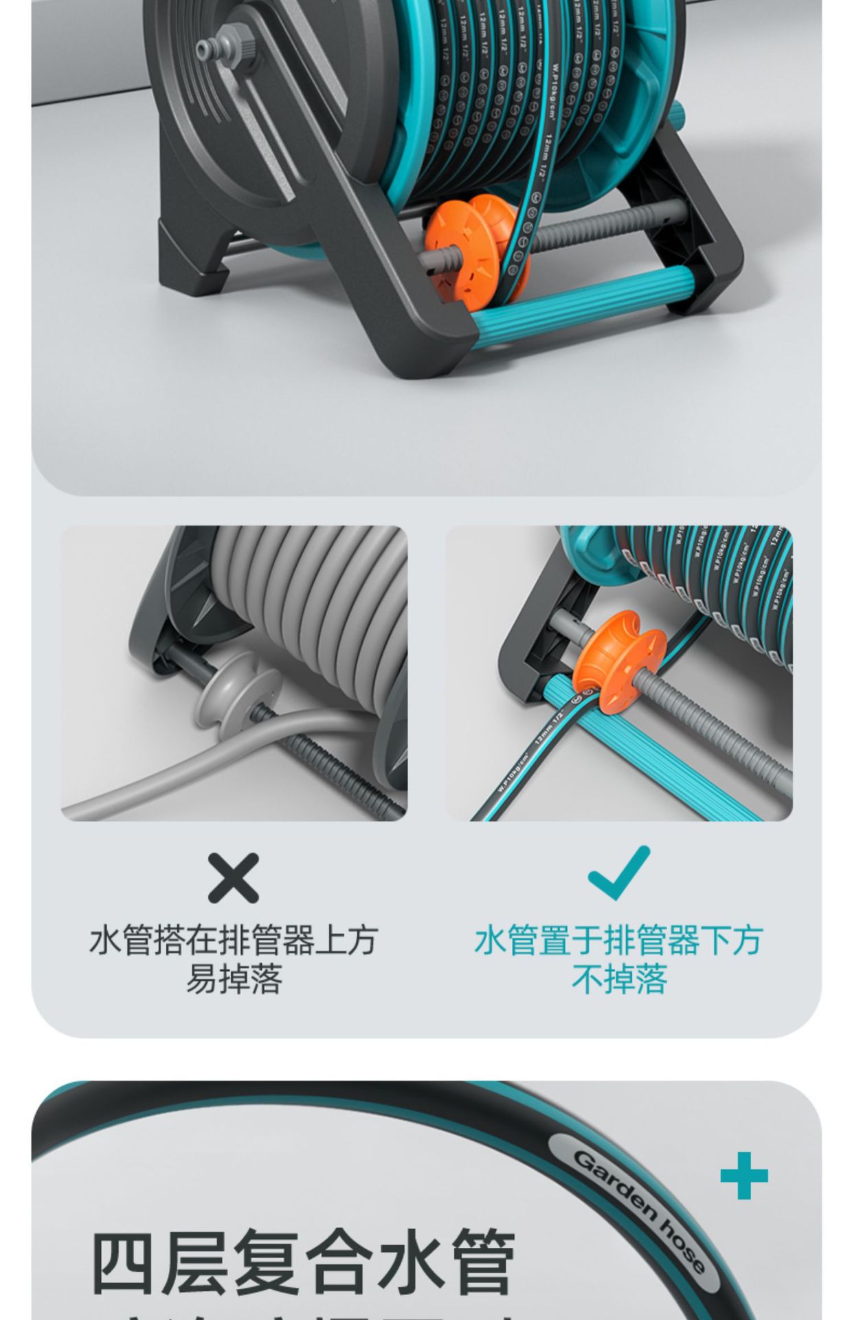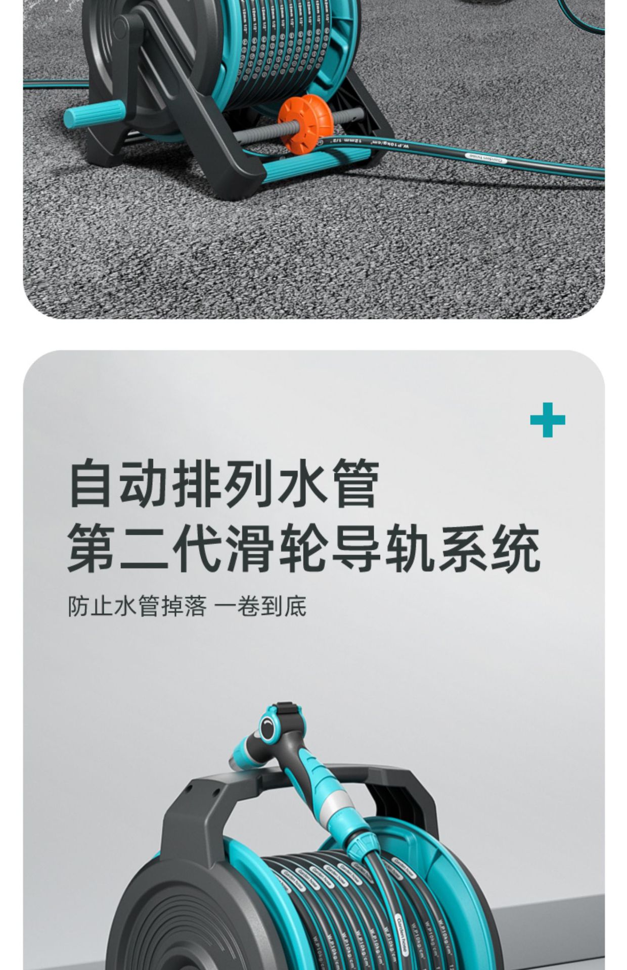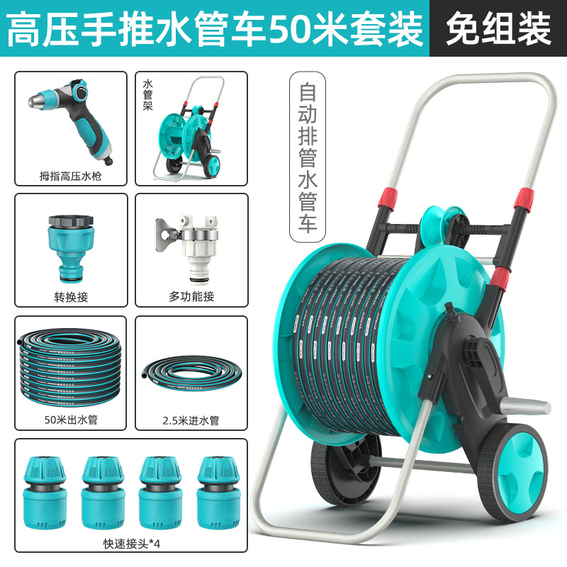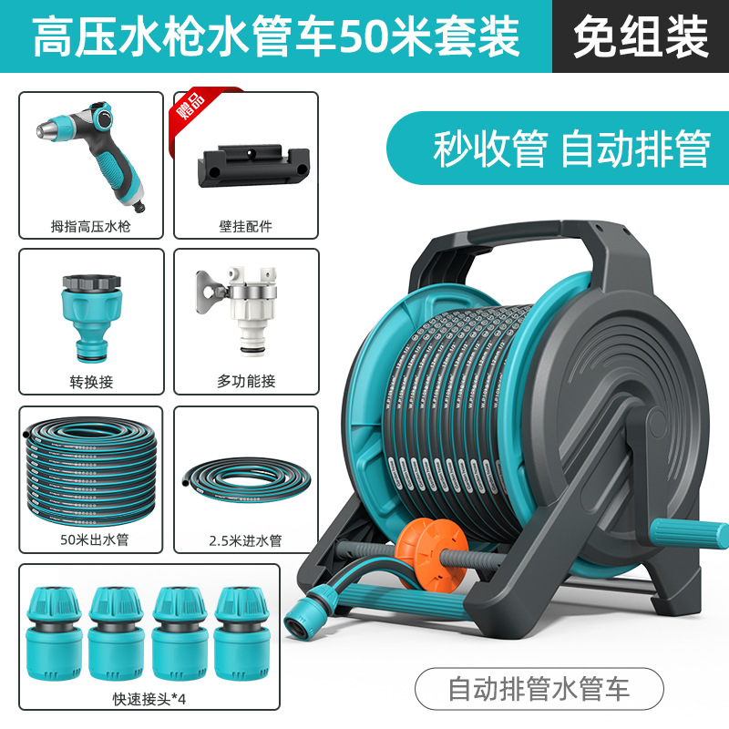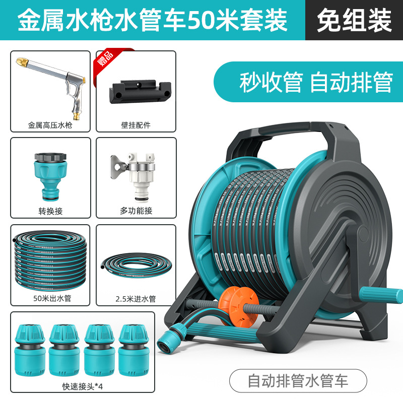 • 【自动排管】金属高压长枪+滑轮50米水管车套装